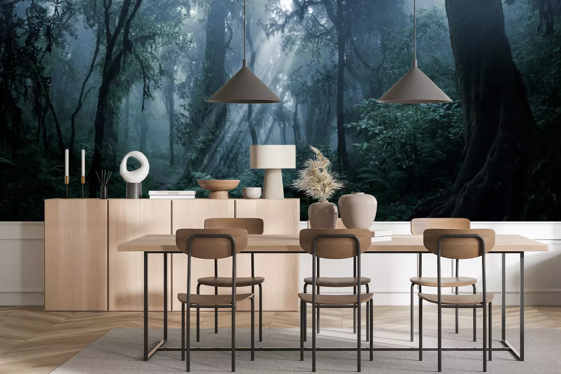 Das Material Premium+ besteht aus einer strukturierten Vinyl-Oberschicht und einem Trägermaterial (Vlies) mit einer Grammatur von 255 g/m², das kleine Unebenheiten der Wand zuverlässig kaschiert. Die feine Sandstruktur verleiht der Oberfläche eine luxuriöse Haptik, während das halbmatte Finish die Tiefe der Farben betont. Das Material ist dampfdurchlässig – so kann diese Fototapete auch in Küchen und Badezimmern eingesetzt werden. Die maximale Breite einer Tapetenbahn beträgt 100 cm. Bei größeren Abmessungen besteht die Fototapete aus mehreren gleich großen Bahnen. Der Kleber wird direkt auf die Wand aufgetragen, und die Fototapete wird auf Stoß angebracht, was für einen ästhetischen Effekt ohne sichtbare Fugen sorgt. Die Oberfläche ist pflegeleicht und kann bei Bedarf sanft mit einem feuchten Tuch abgewischt werden.