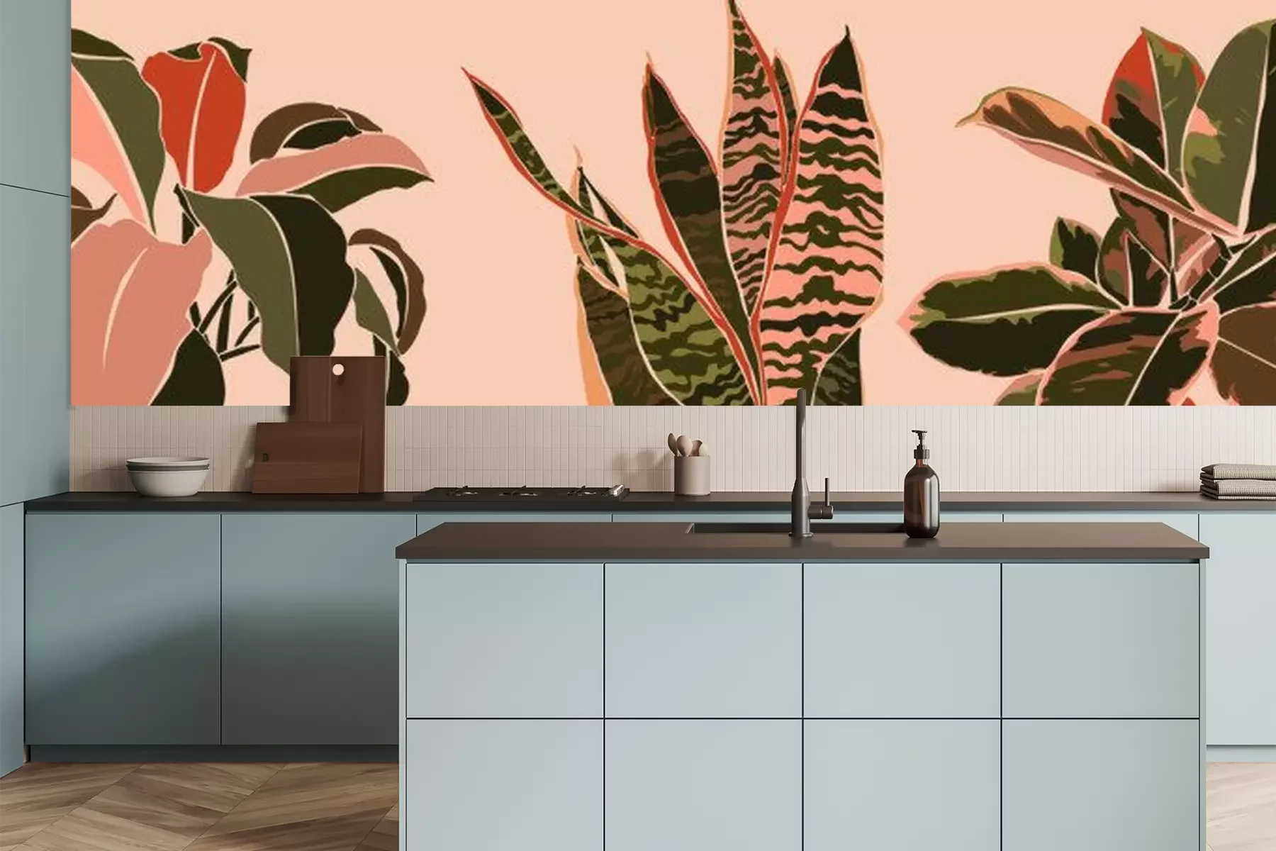 Fototapete Grün-rosa Pflanzen mit Hintergrund