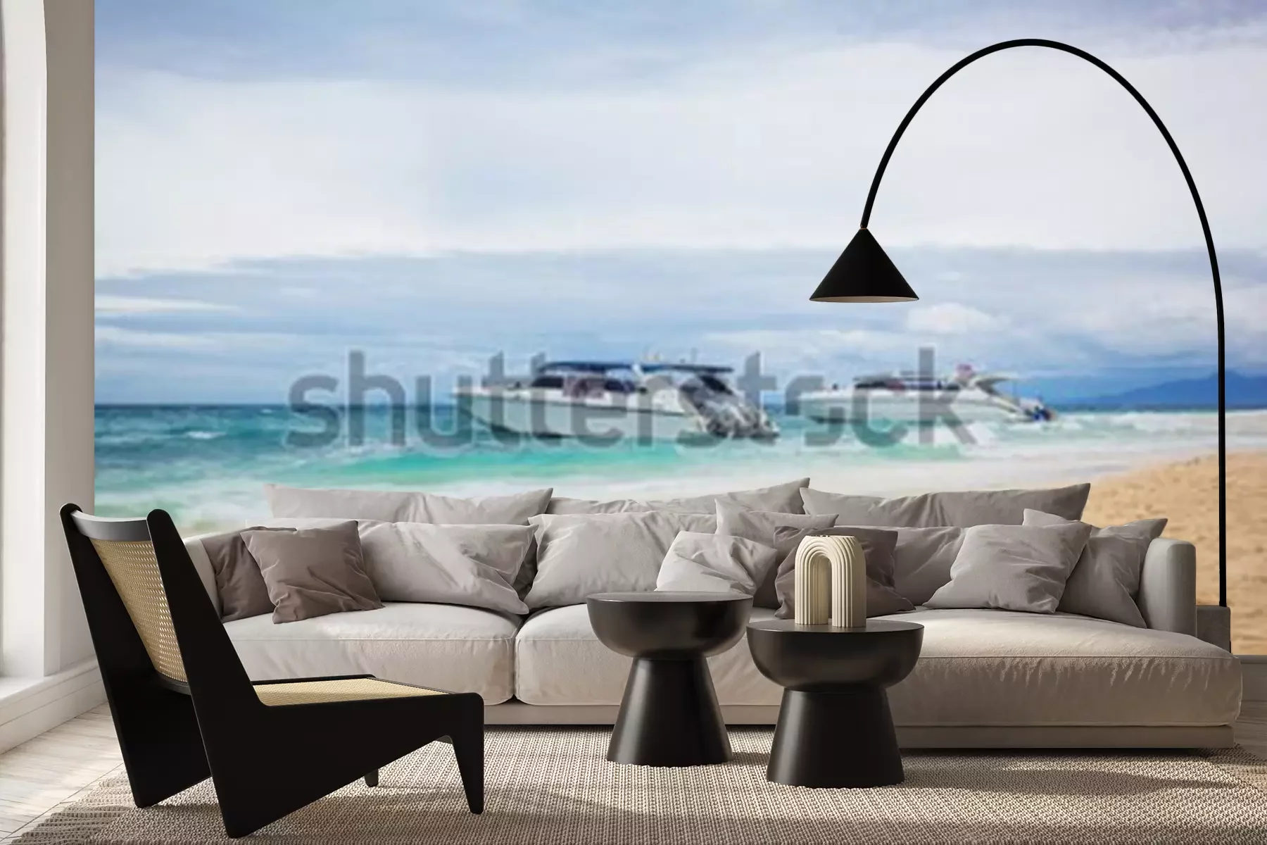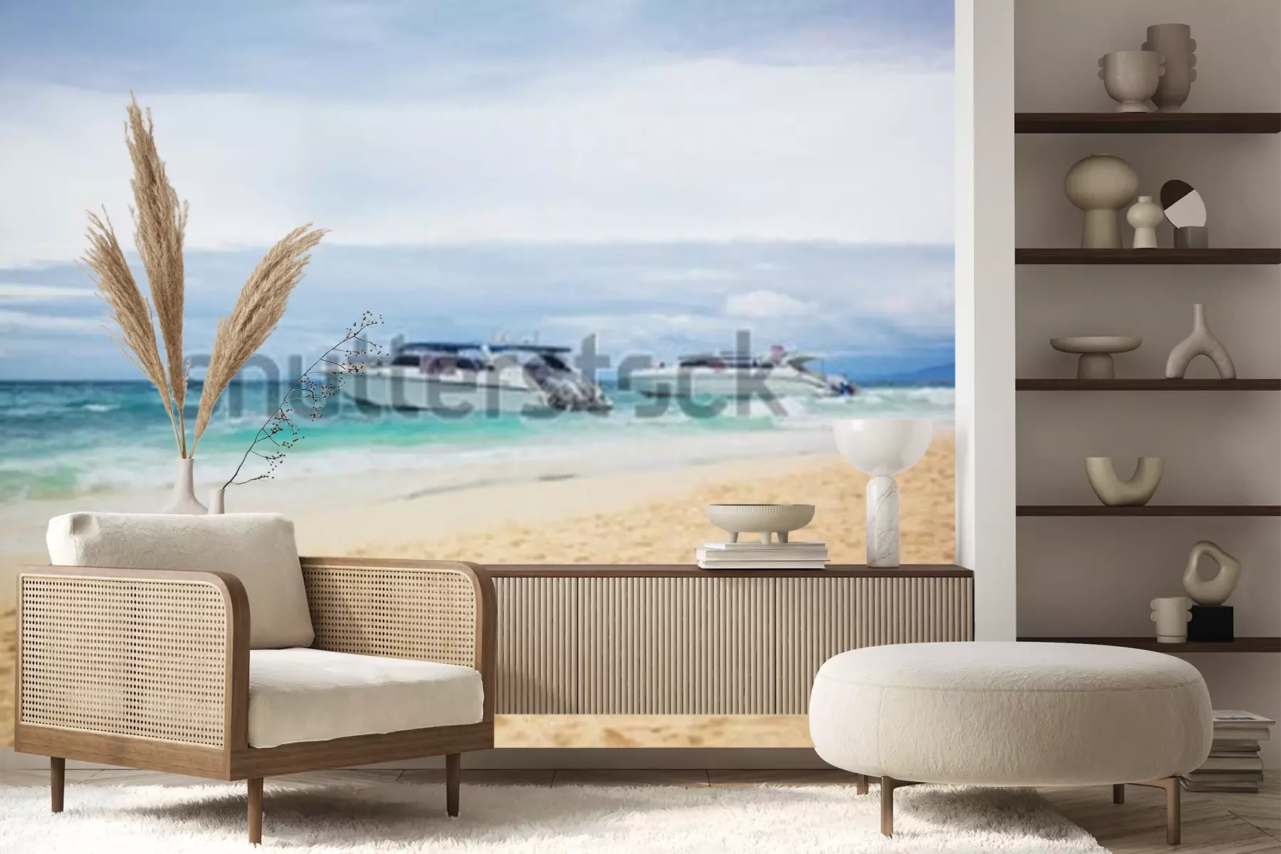 Fototapete Motorboote am Strand