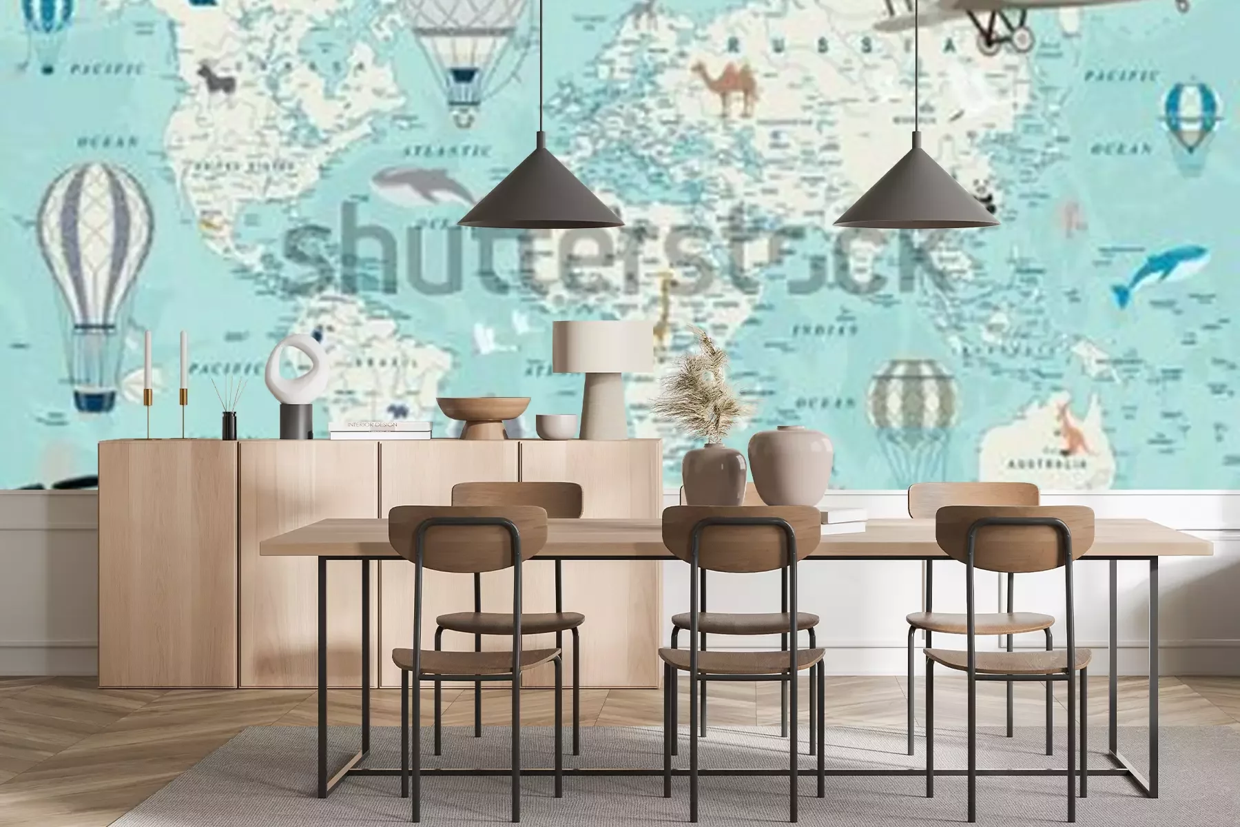 Fototapete Old geography travel map with regional animals and aircrafts. Vector.