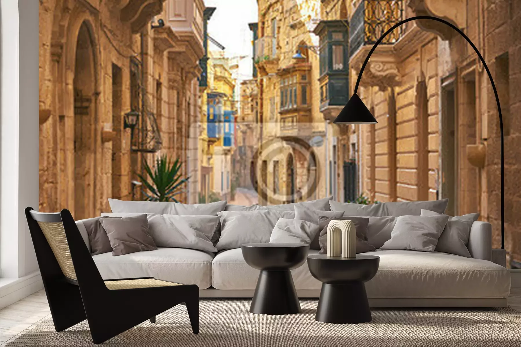 Das Material Premium+ besteht aus einer strukturierten Vinyl-Oberschicht und einem Trägermaterial (Vlies) mit einer Grammatur von 255 g/m², das kleine Unebenheiten der Wand zuverlässig kaschiert. Die feine Sandstruktur verleiht der Oberfläche eine luxuriöse Haptik, während das halbmatte Finish die Tiefe der Farben betont. Das Material ist dampfdurchlässig – so kann diese Fototapete auch in Küchen und Badezimmern eingesetzt werden. Die maximale Breite einer Tapetenbahn beträgt 100 cm. Bei größeren Abmessungen besteht die Fototapete aus mehreren gleich großen Bahnen. Der Kleber wird direkt auf die Wand aufgetragen, und die Fototapete wird auf Stoß angebracht, was für einen ästhetischen Effekt ohne sichtbare Fugen sorgt. Die Oberfläche ist pflegeleicht und kann bei Bedarf sanft mit einem feuchten Tuch abgewischt werden.