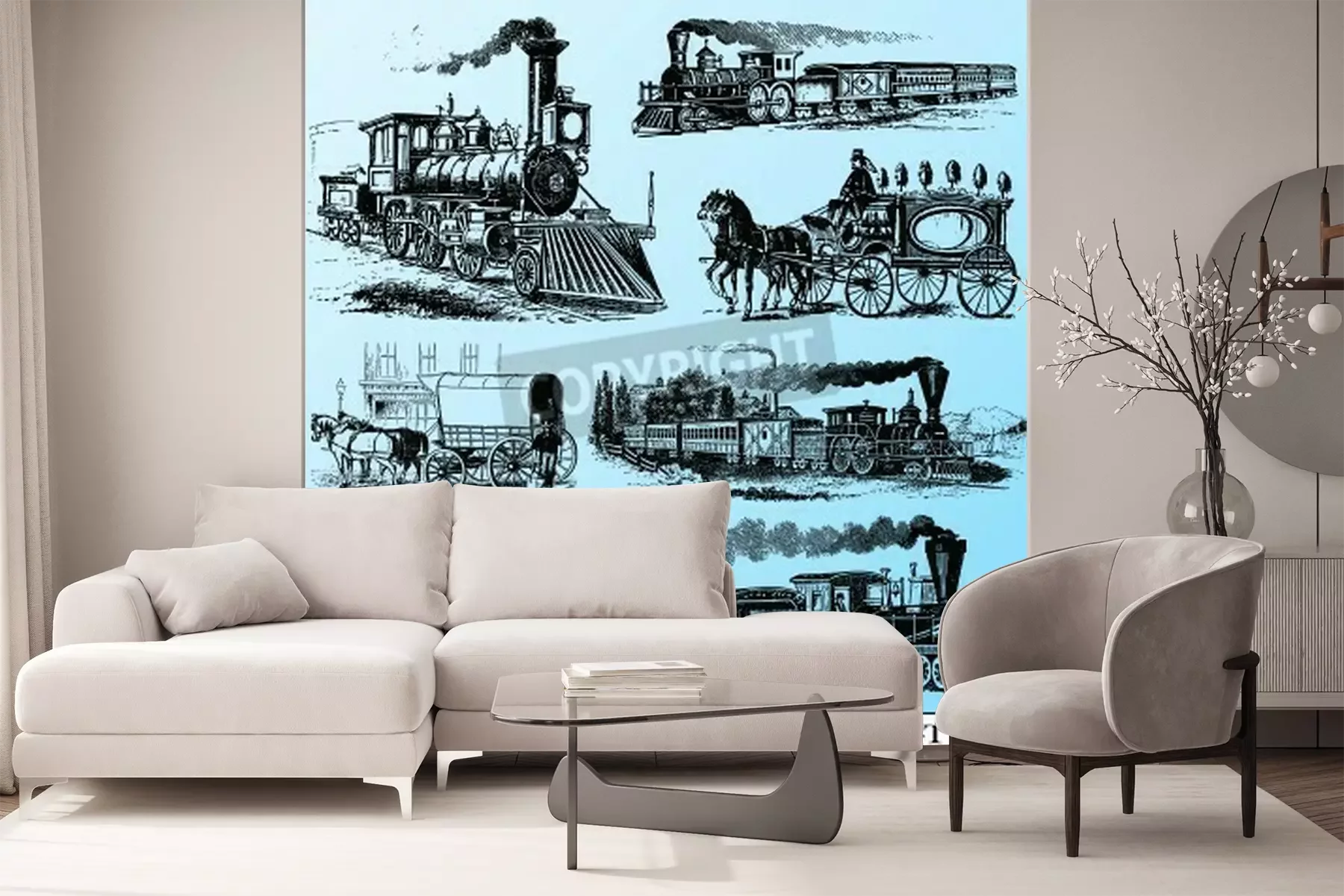 Fototapete Züge und Lokomotiven wie skizziert