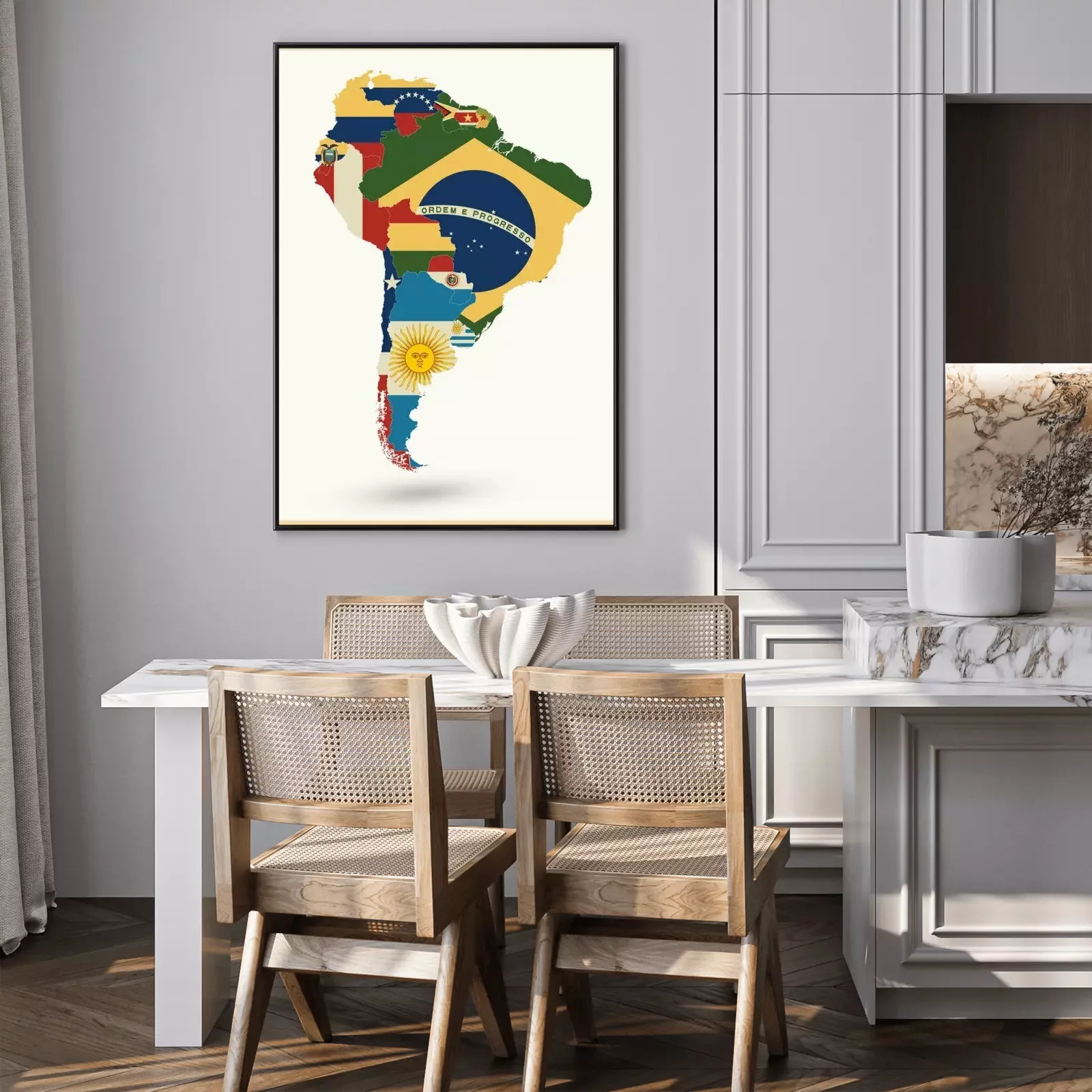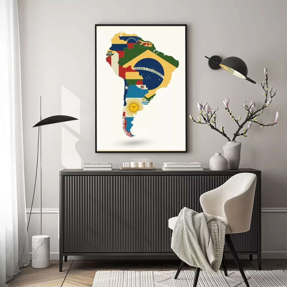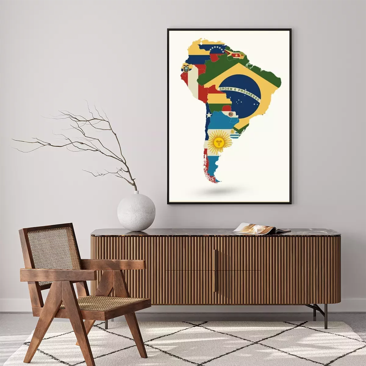 Poster Südamerika Karte Mit Flaggen Und Vintage Farben