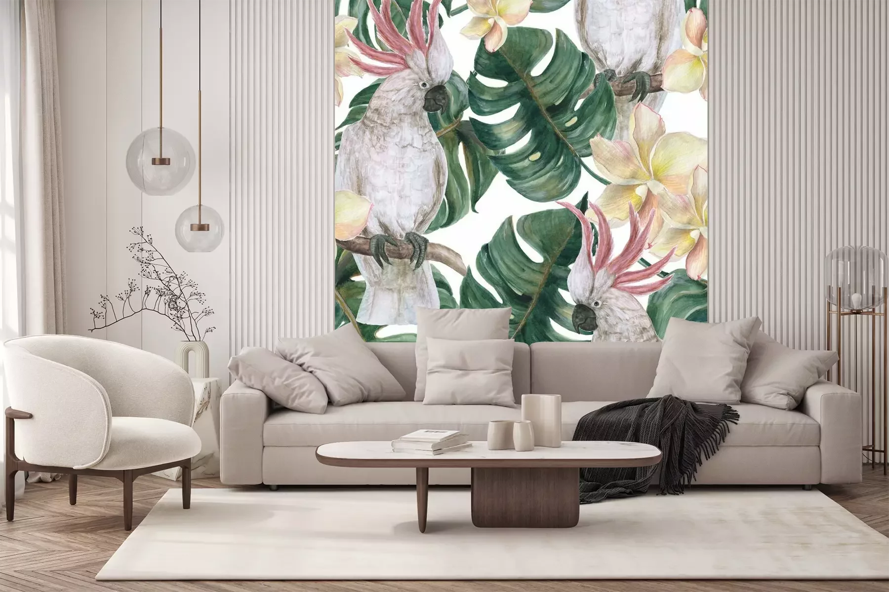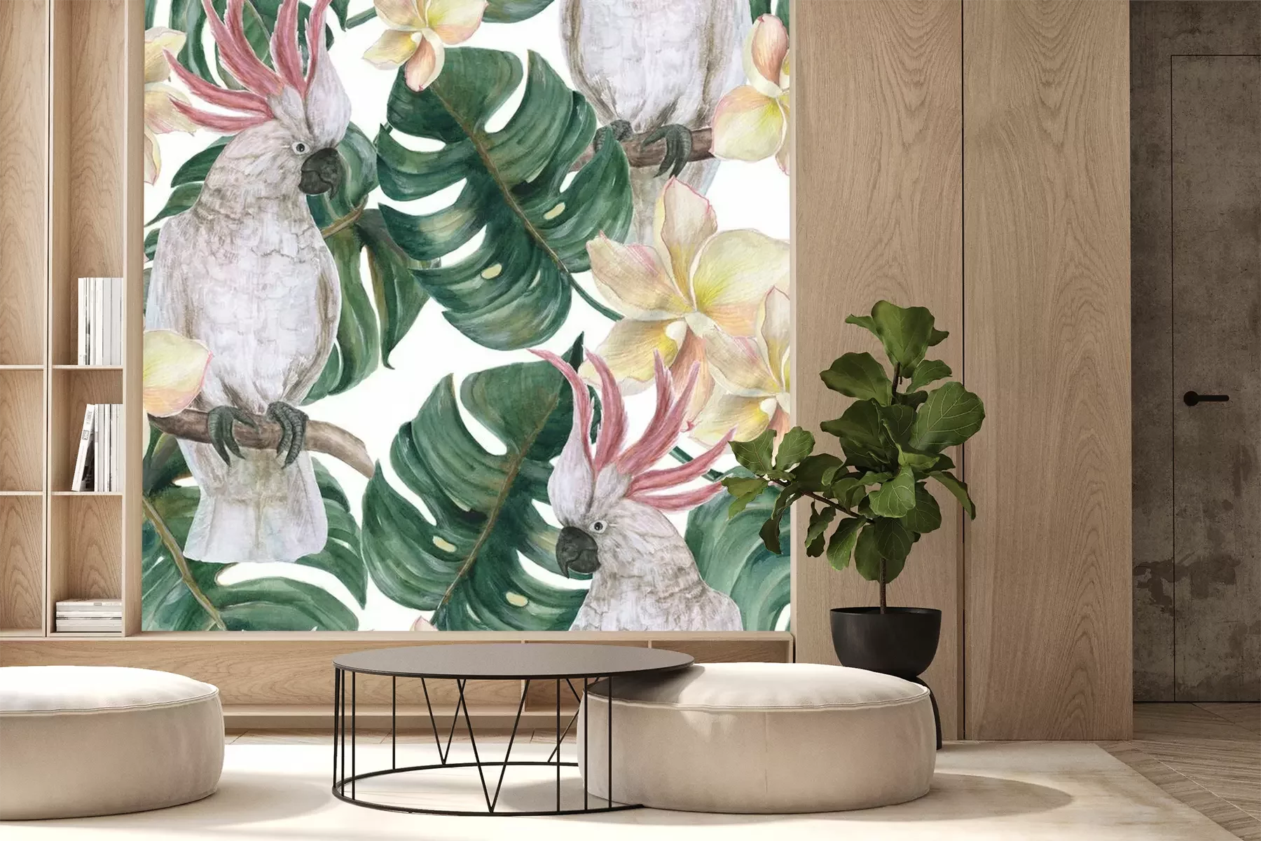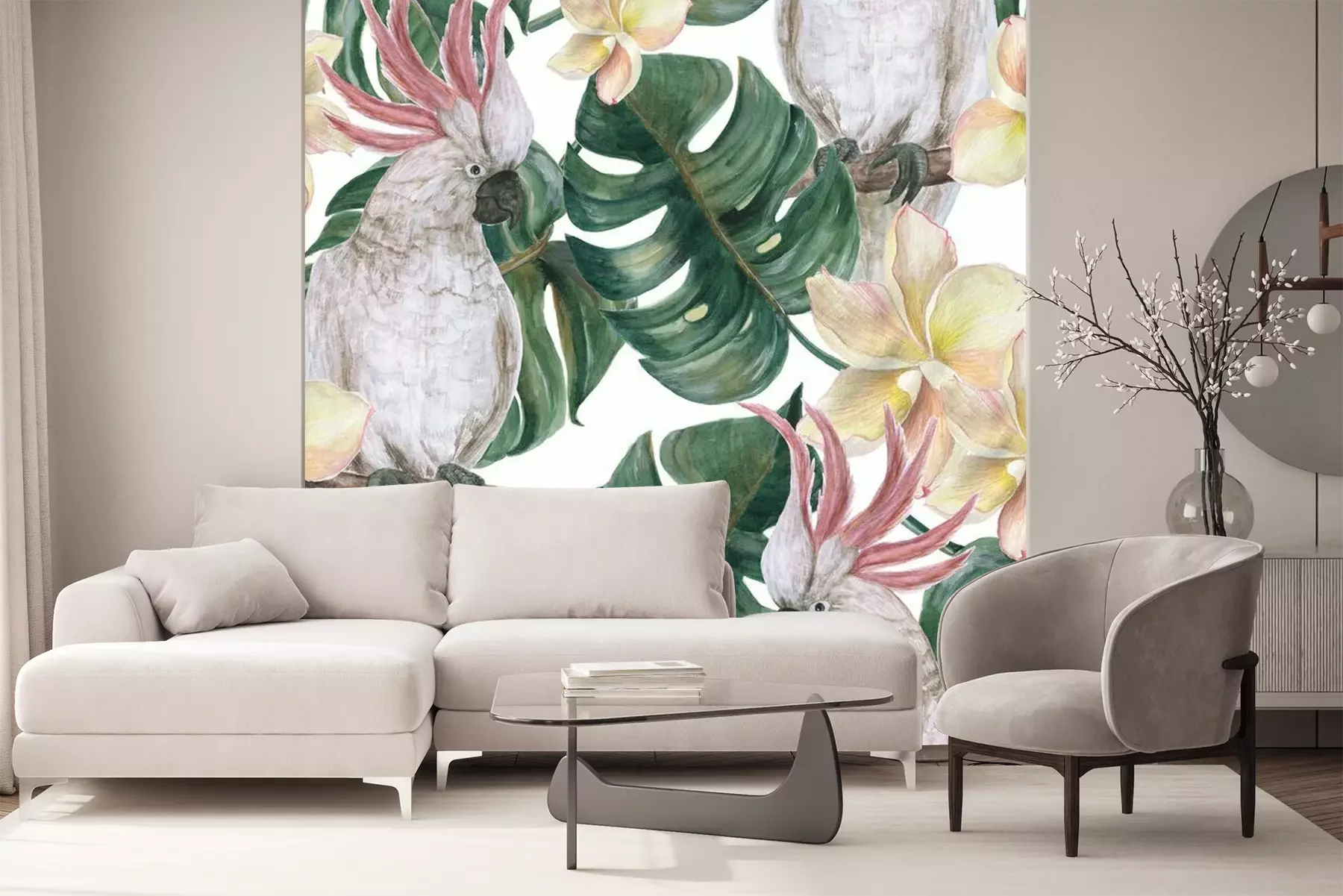 Kakadu-Papageien und BlätterProblemlose Lieferung durch vertrauenswürdige Spediteure
