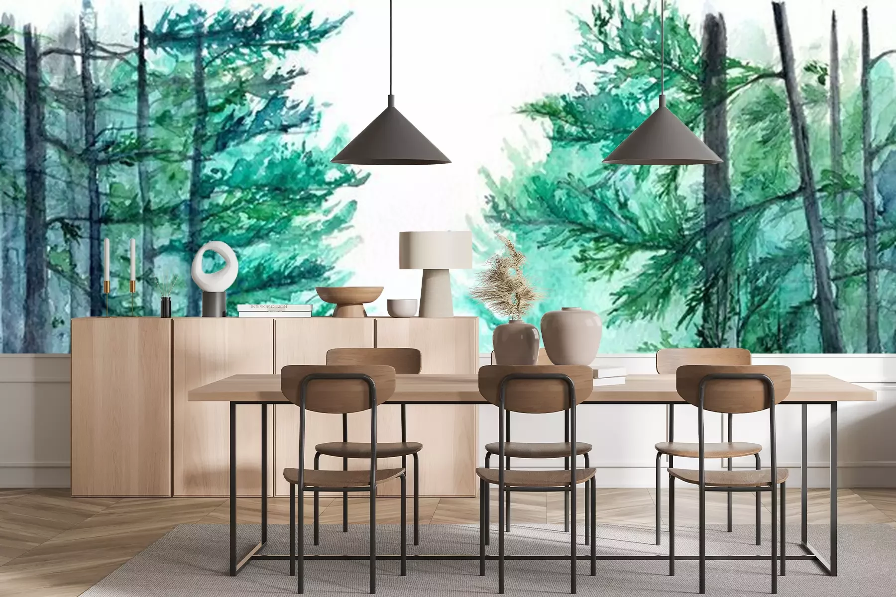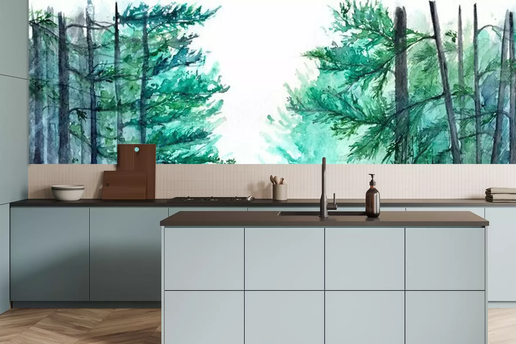 Sticker Aquarell türkis Winter Holz Wald Kiefer Landschaft