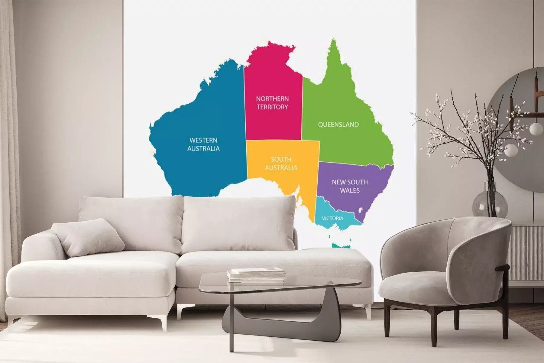 Sticker Australien-Karte Farbe mit REGIONEN flache Bauweise Videos