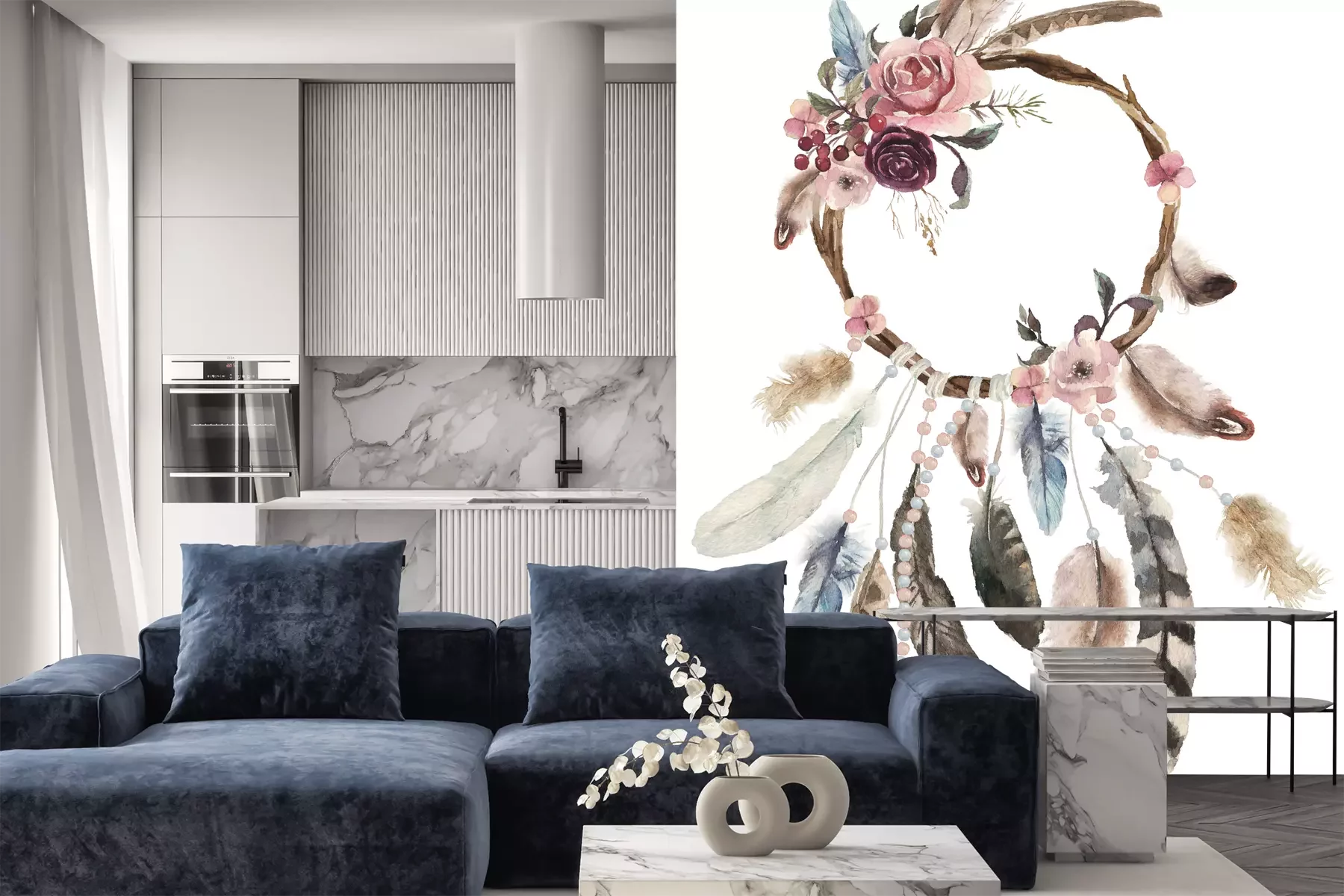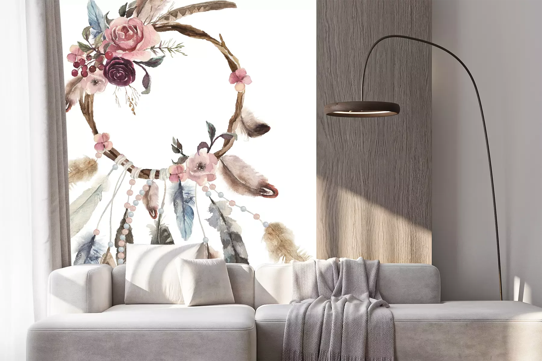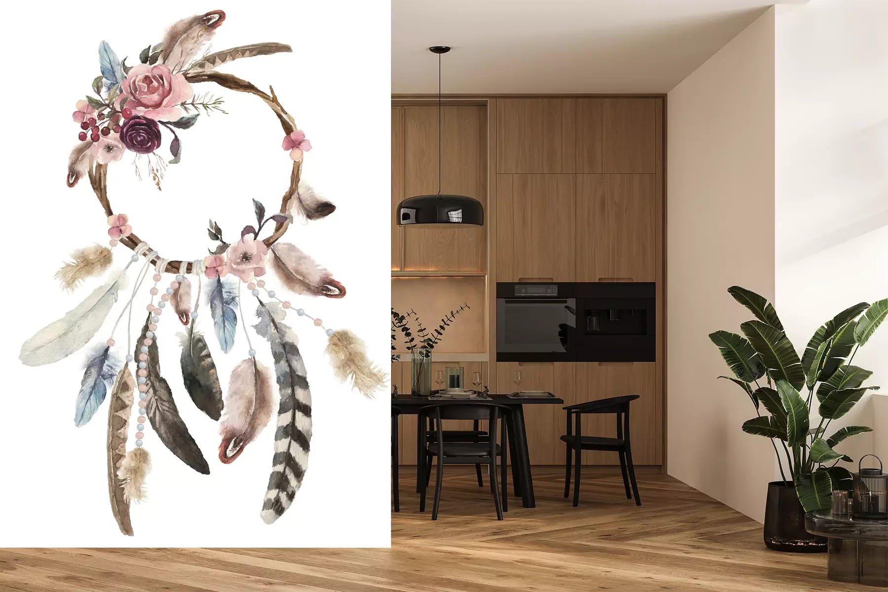 Sticker Böhmischer Dreamcatcher der Aquarelldekoration, boho Federn Dekoration, gebürtiger Traumentwurf, ethnischer Stammes- Druck des Geheimnisses, amerikanischer Kulturentwurf, Zigeunerverzierung, Traumfäng