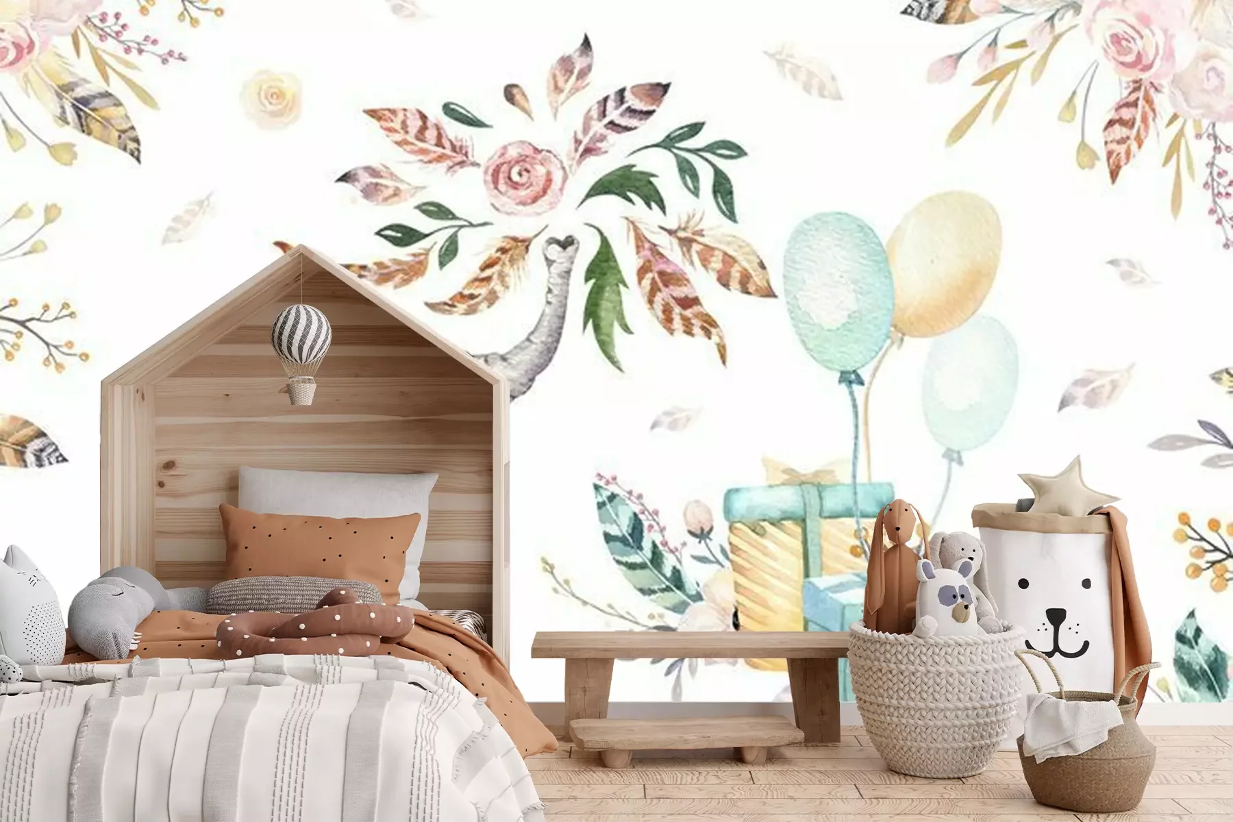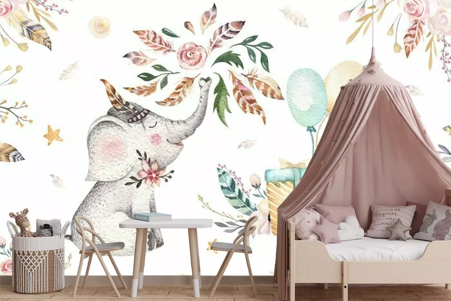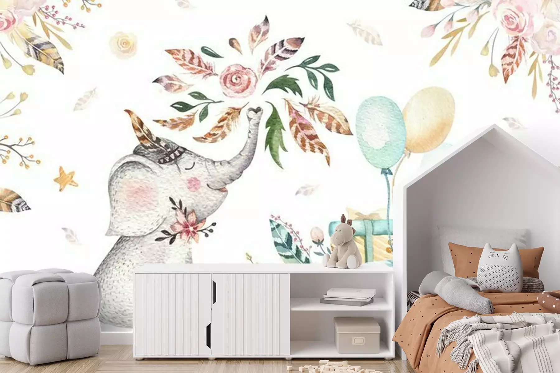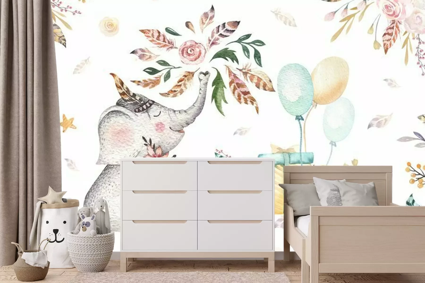 Sticker Cute Baby Elefanten Kindergarten Tier isoliert Illustration für Kinder. Böhmische aquarell boho wald elefanten familie zeichnung, aquarell bild. Vervollkommnen Sie für Kinderzimmerplakate, Muster. Geb