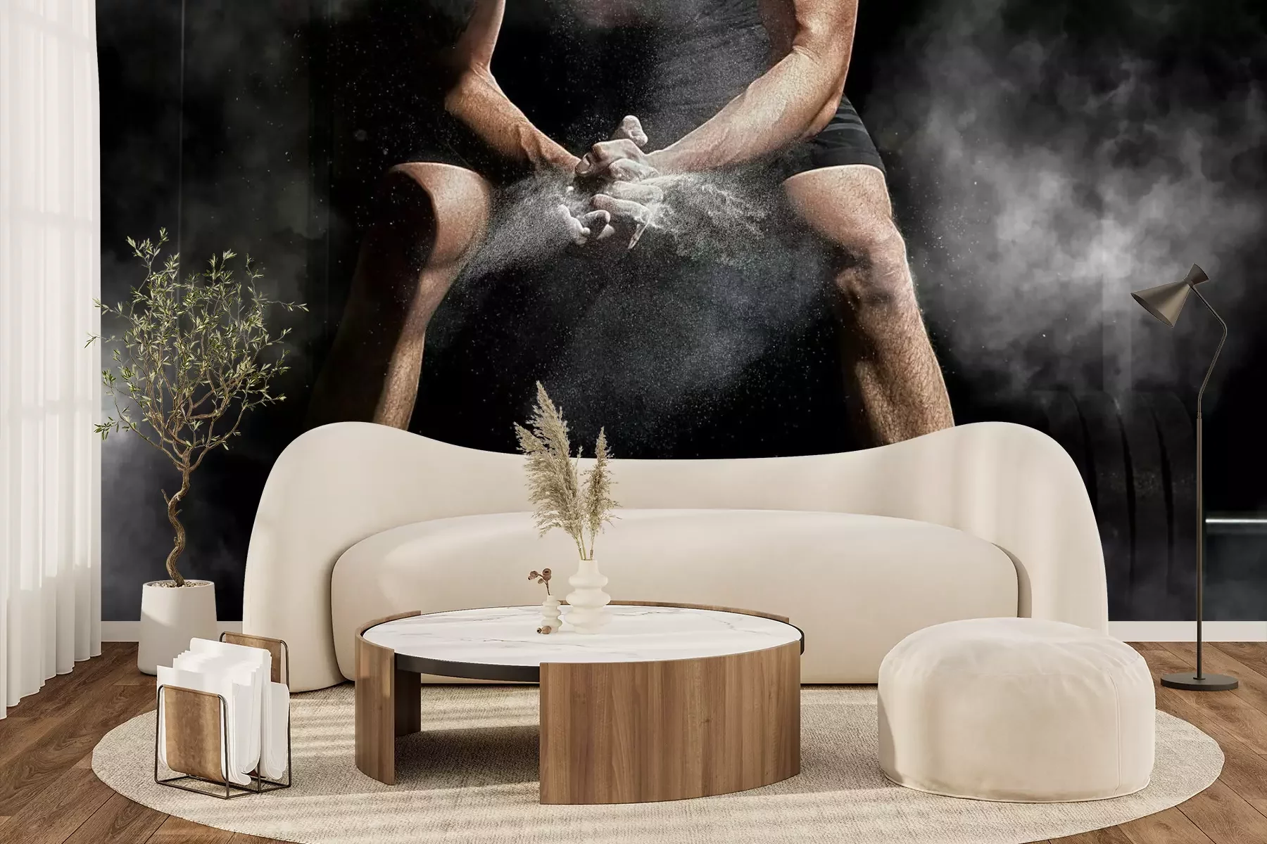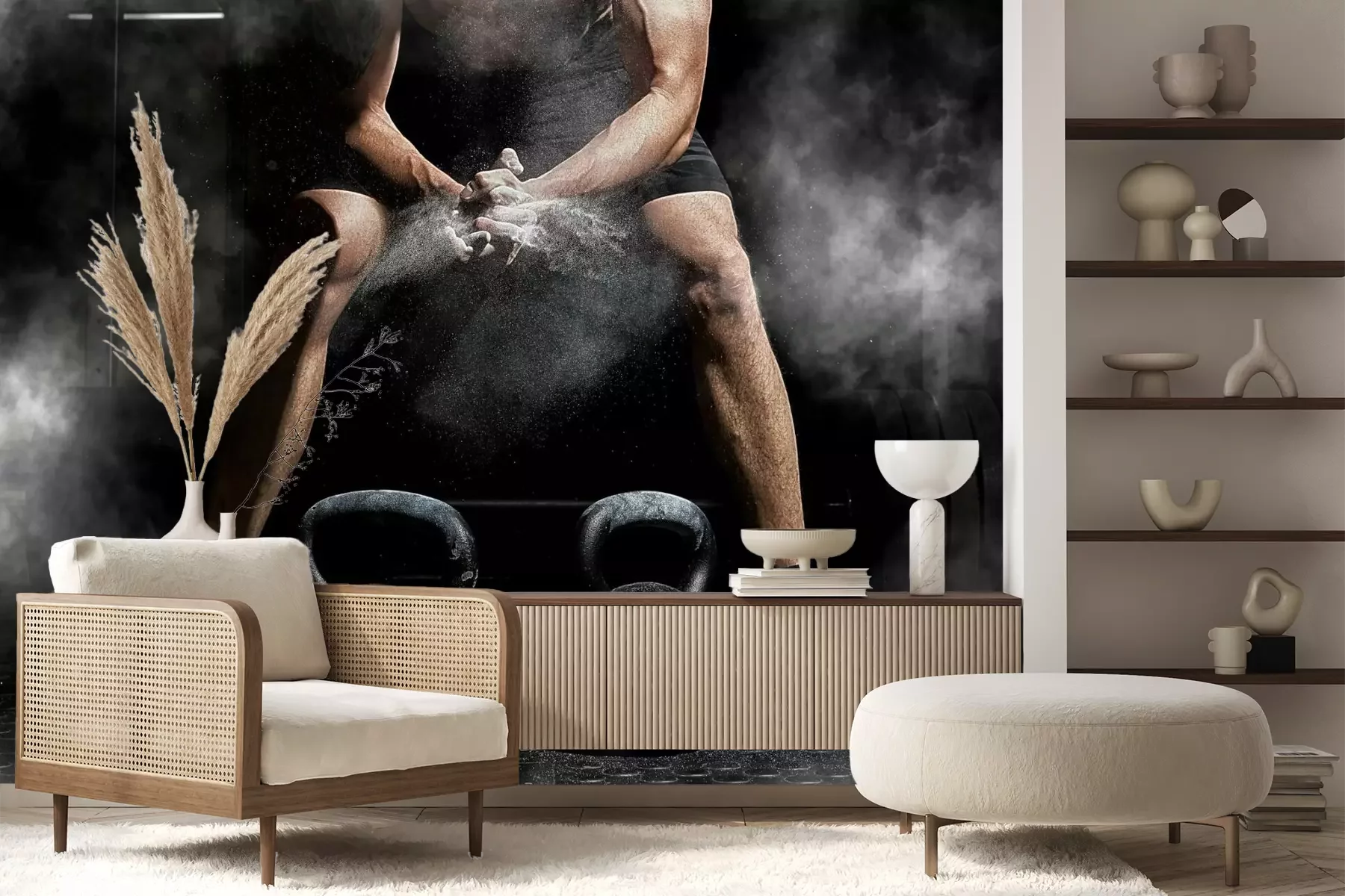 Sticker Ein Mann bereitet sich darauf vor einen Ball zu heben Gewichtheben