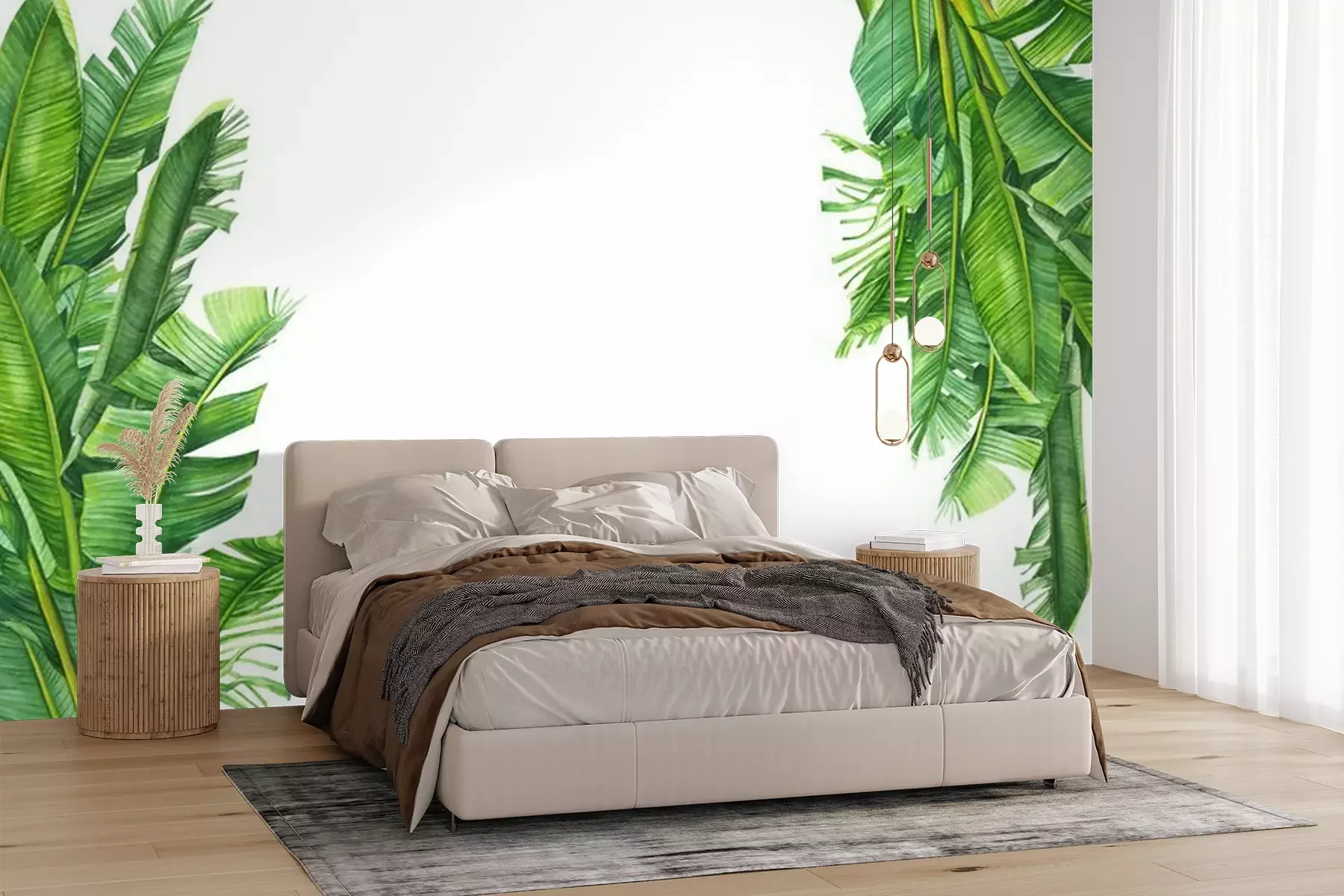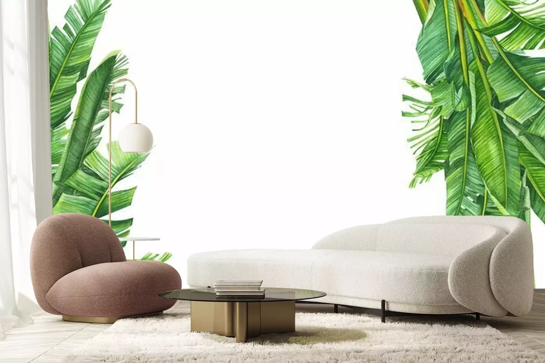 Sticker Greeting card with place for text, invitation. Tropical plants, banana palm on an isolated white background, watercolor illustration, hand drawing, botanical painting