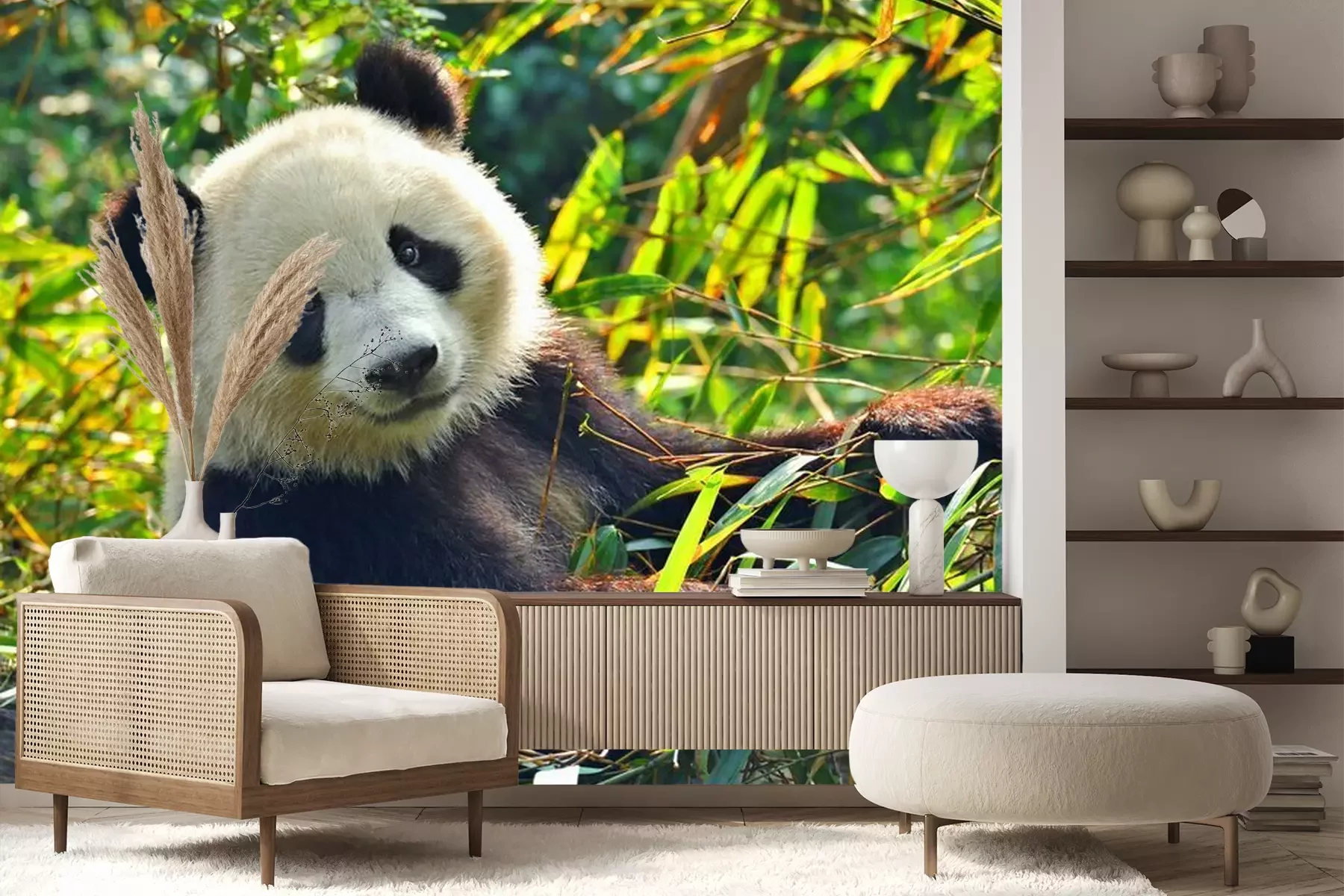 Sticker Hungry Riesenpandabären, der Bambus
