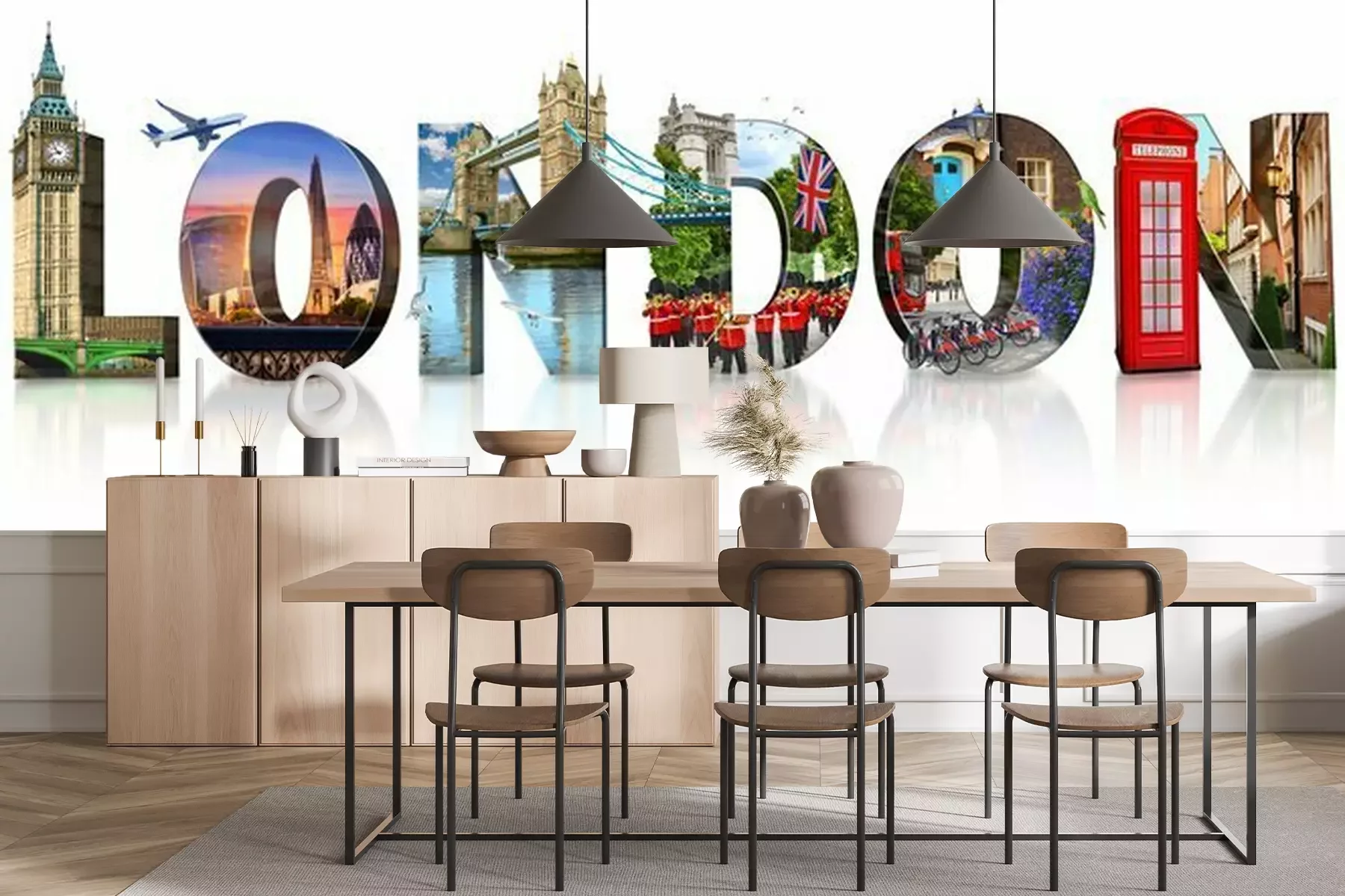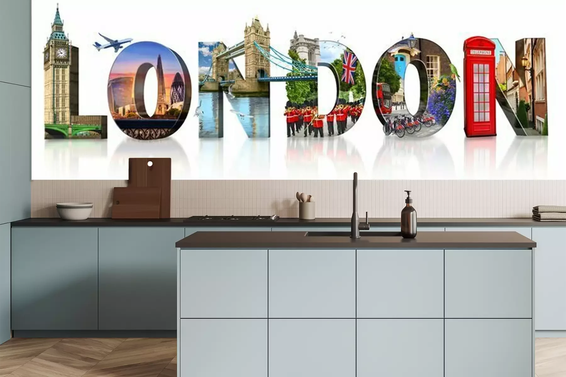 Sticker London city landmarks. Word illustration of most famous London monuments and places