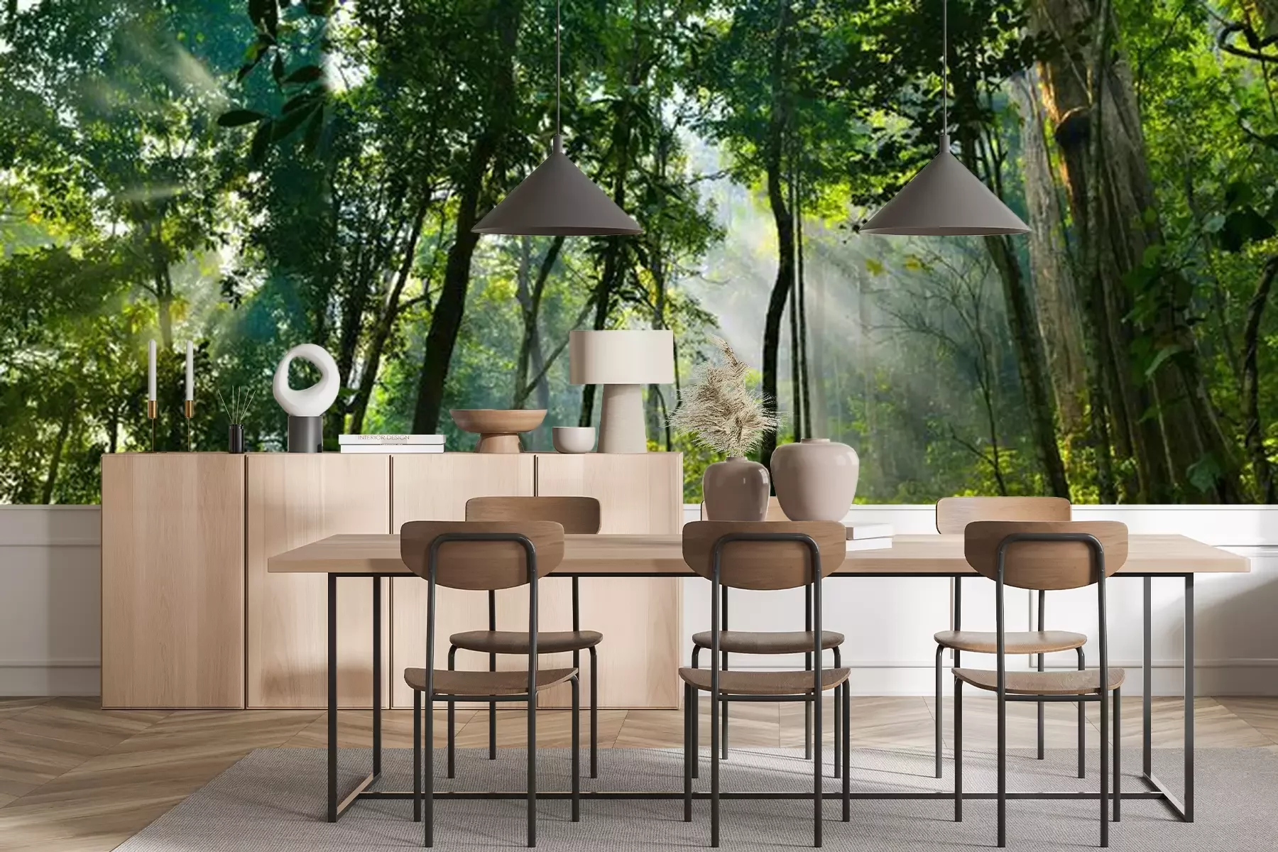 Sticker Panorama banner background of tropical forest landscape scene for using in concept of environmental ecology and sustainable energy or Earth day, wild wood scenic using for wallpaper of spa and tourism