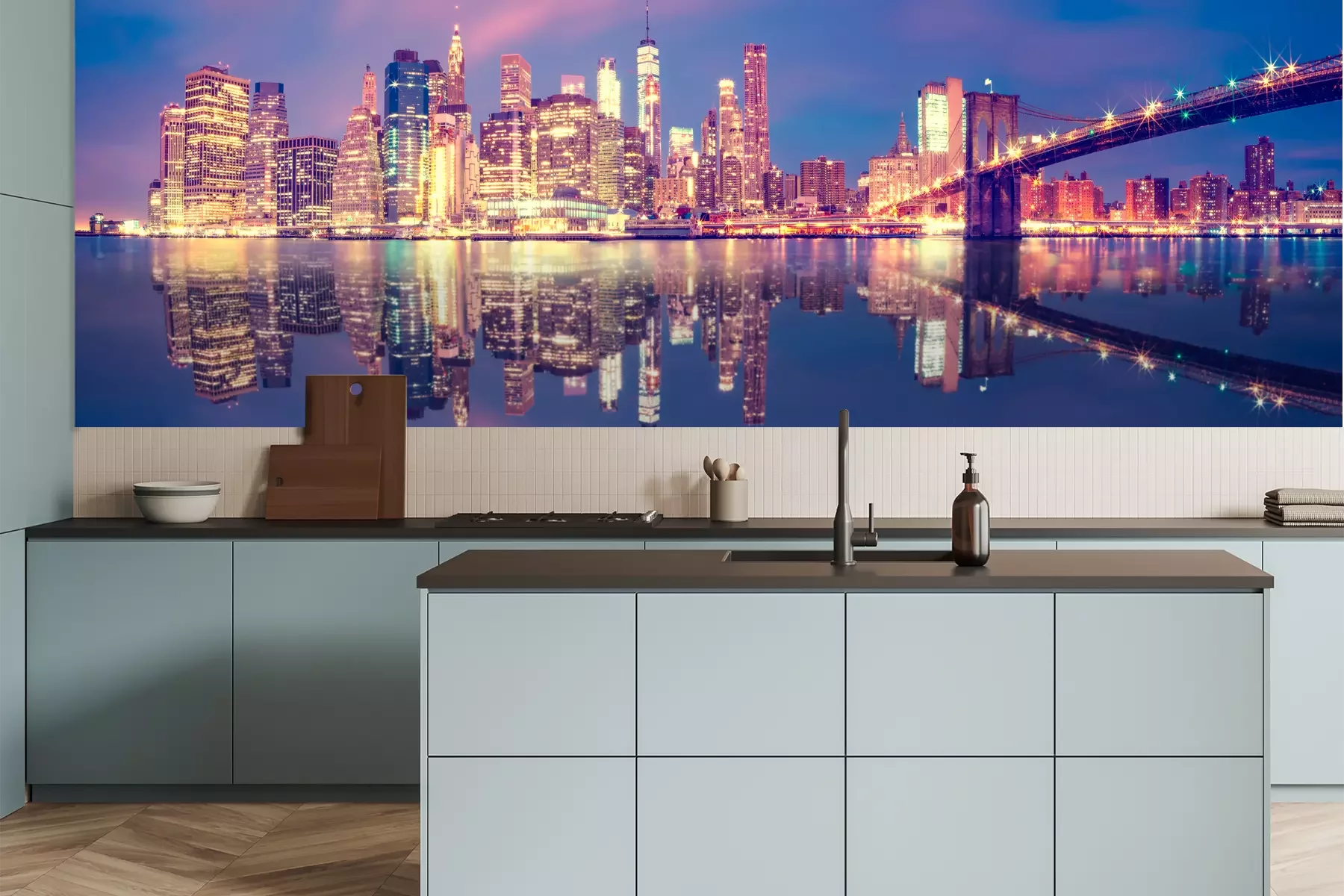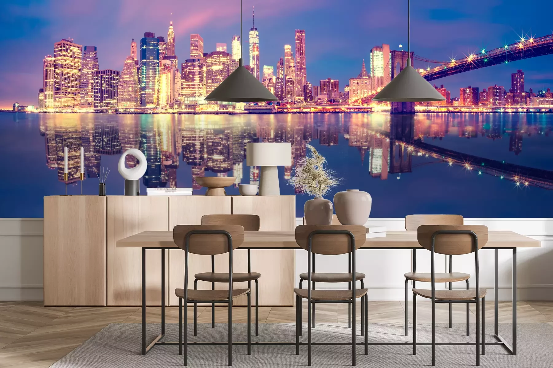 Sticker Panorama von Manhattan-Stadtmitte an der Dämmerung mit Wolkenkratzern, New York City