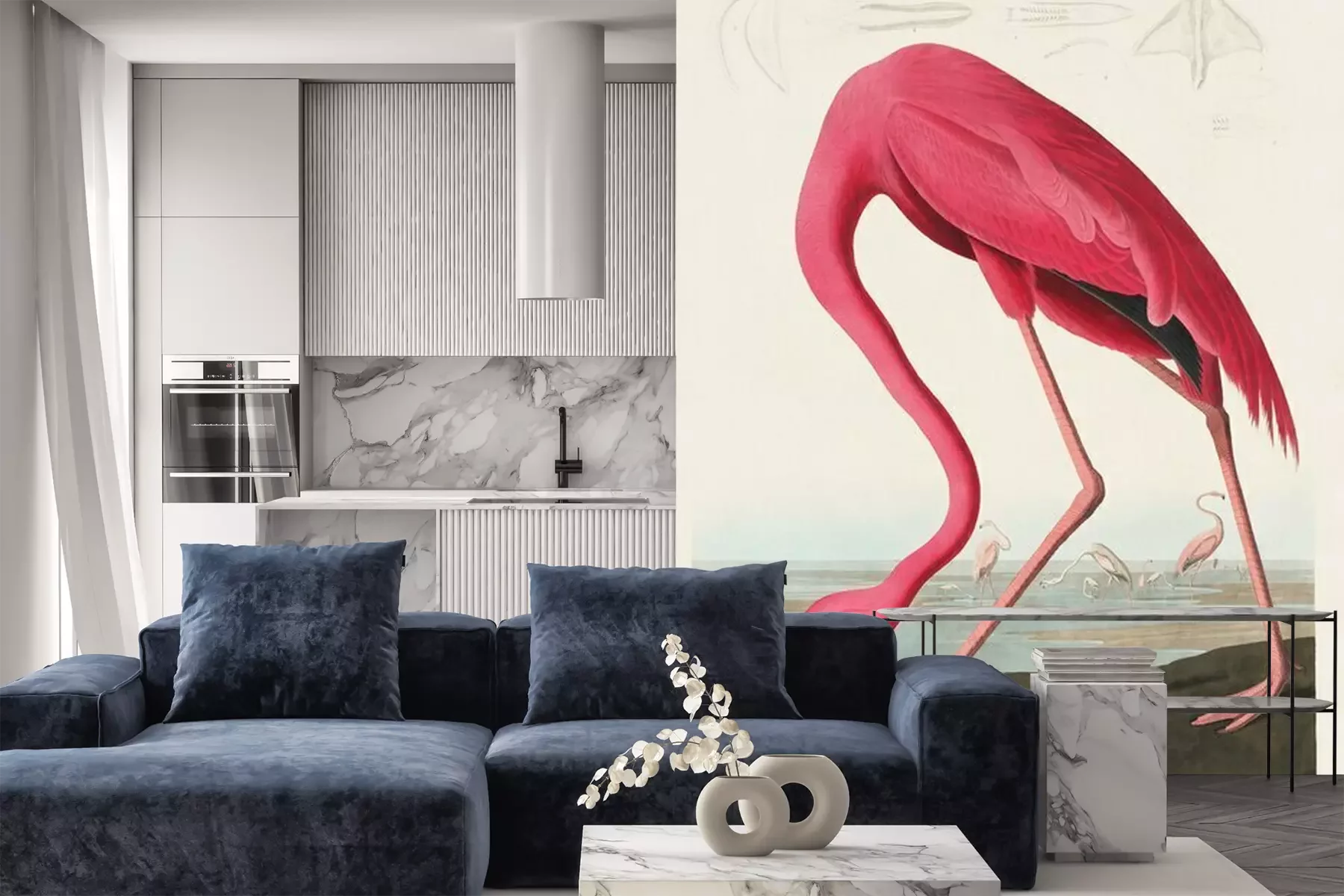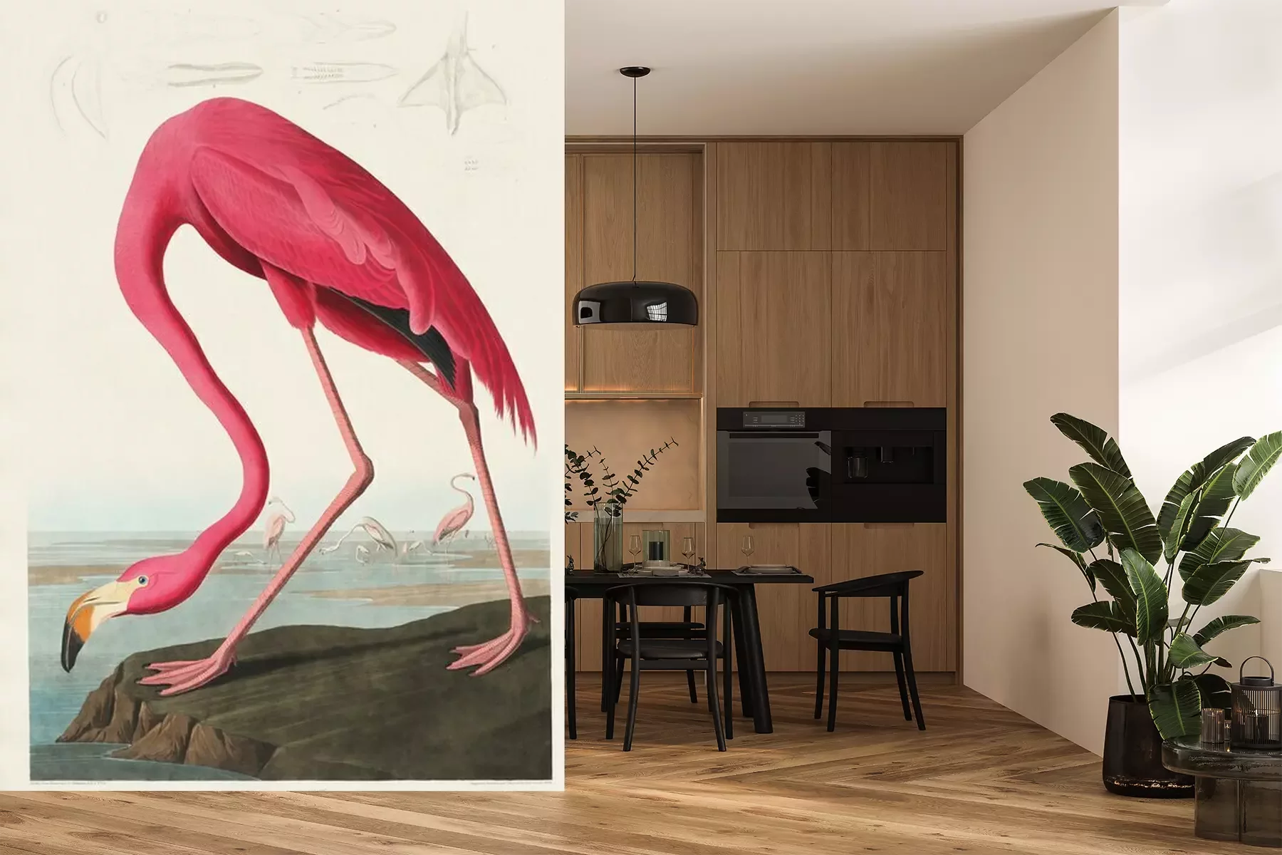 Sticker Pink Flamingo from Birds of America (1827) by John James Audubon (1785 - 1851 ), etched by Robert Havell (1793 - 1878)