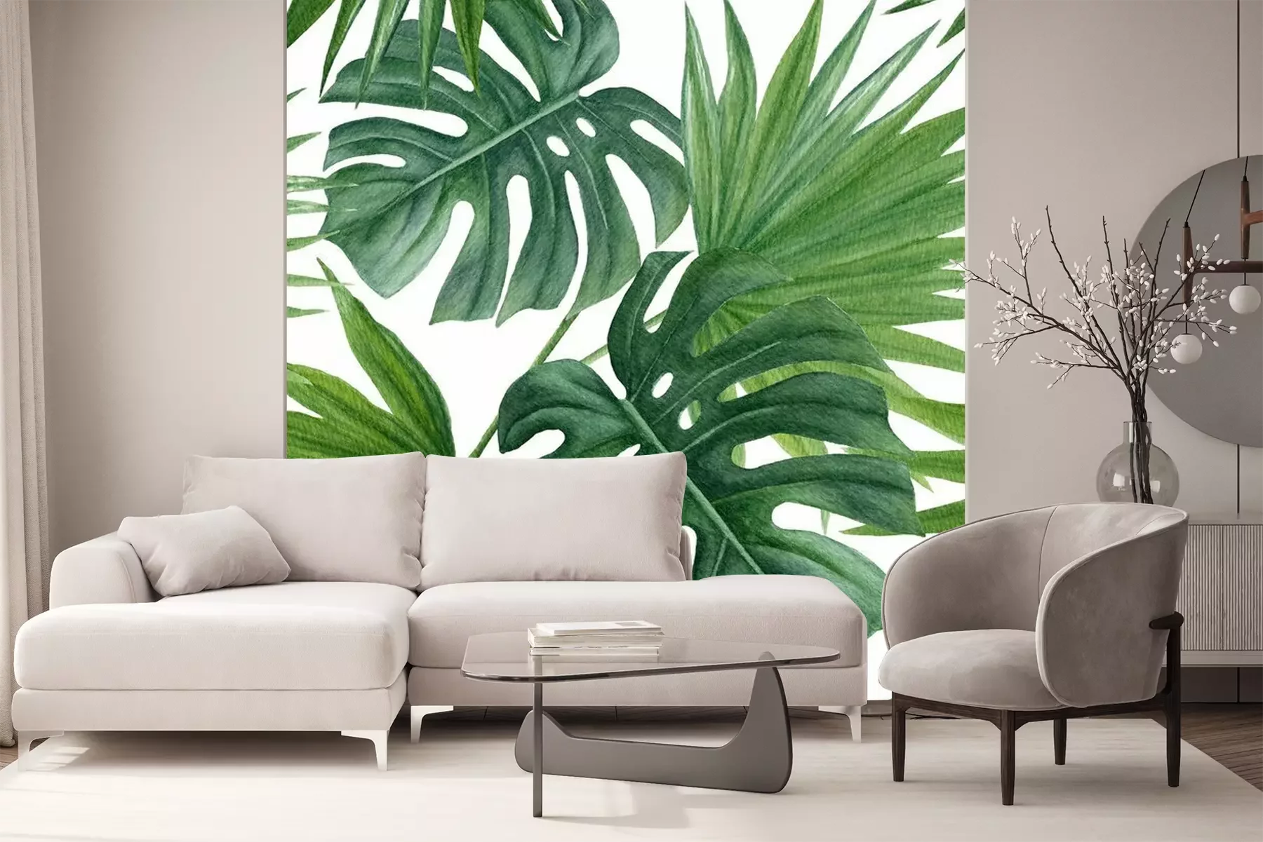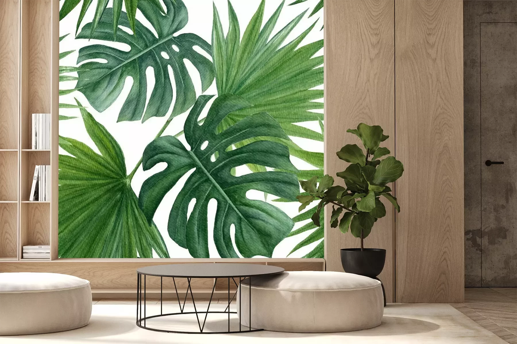 Sticker Seamless pattern with  tropic leaves. Watercolor hand drawn background.