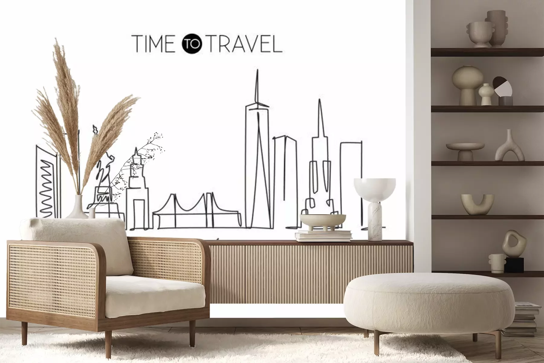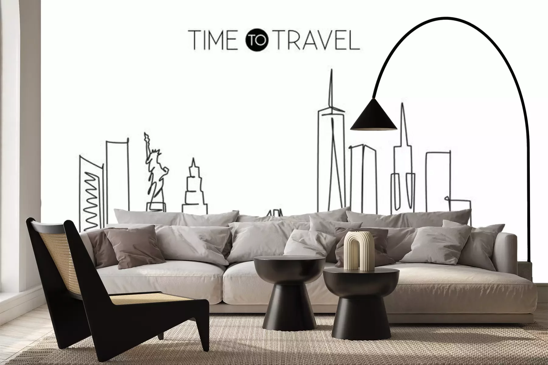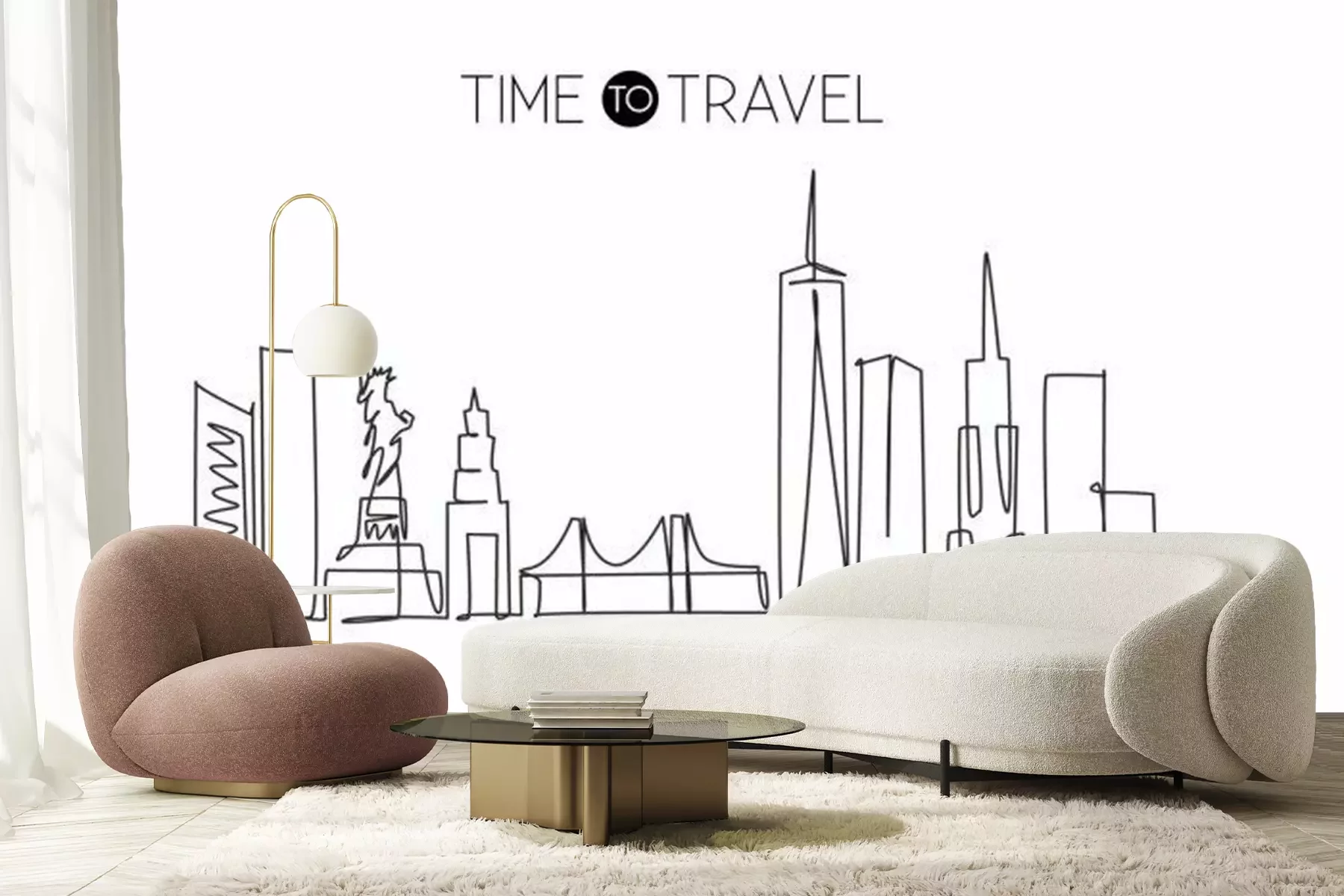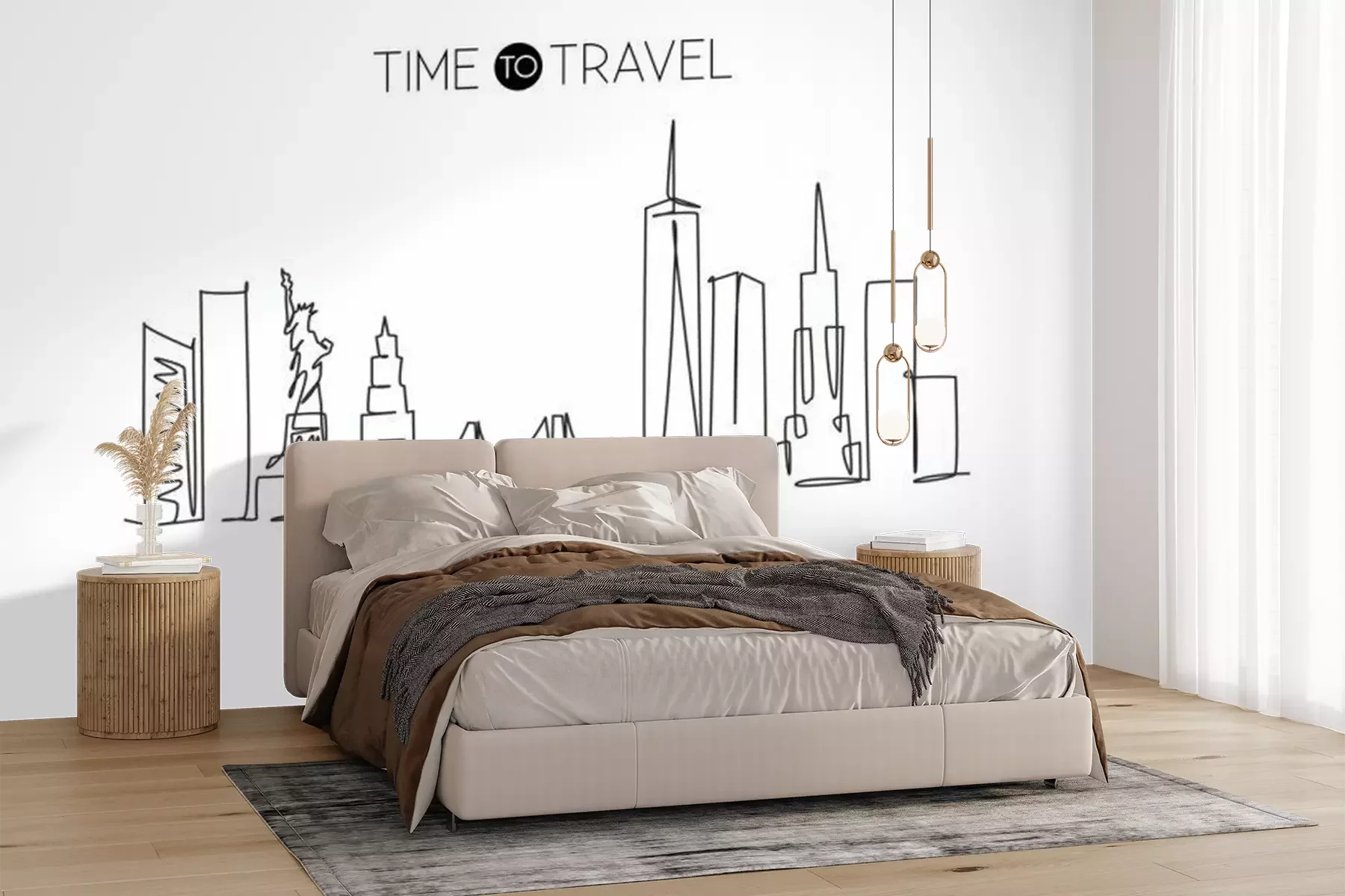 Sticker Single continuous line drawing of New York city skyline, USA. Famous city scraper and landscape. World travel concept home wall decor poster print art. Modern one line draw design vector illustration