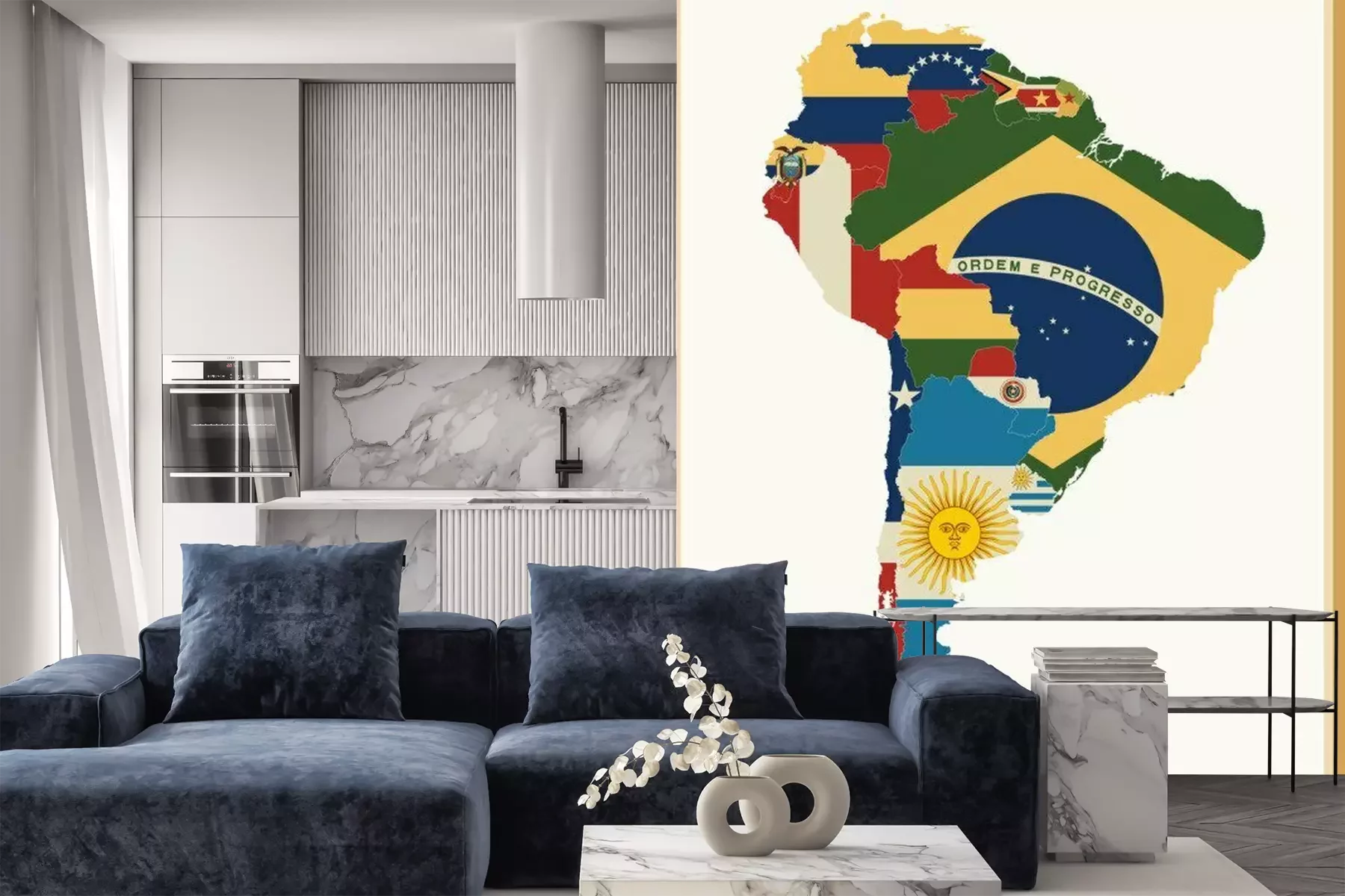 Sticker Südamerika Karte Mit Flaggen Und Vintage Farben