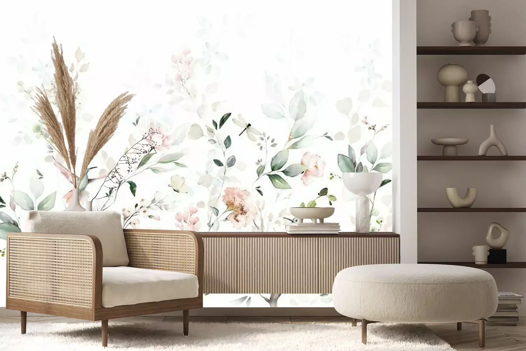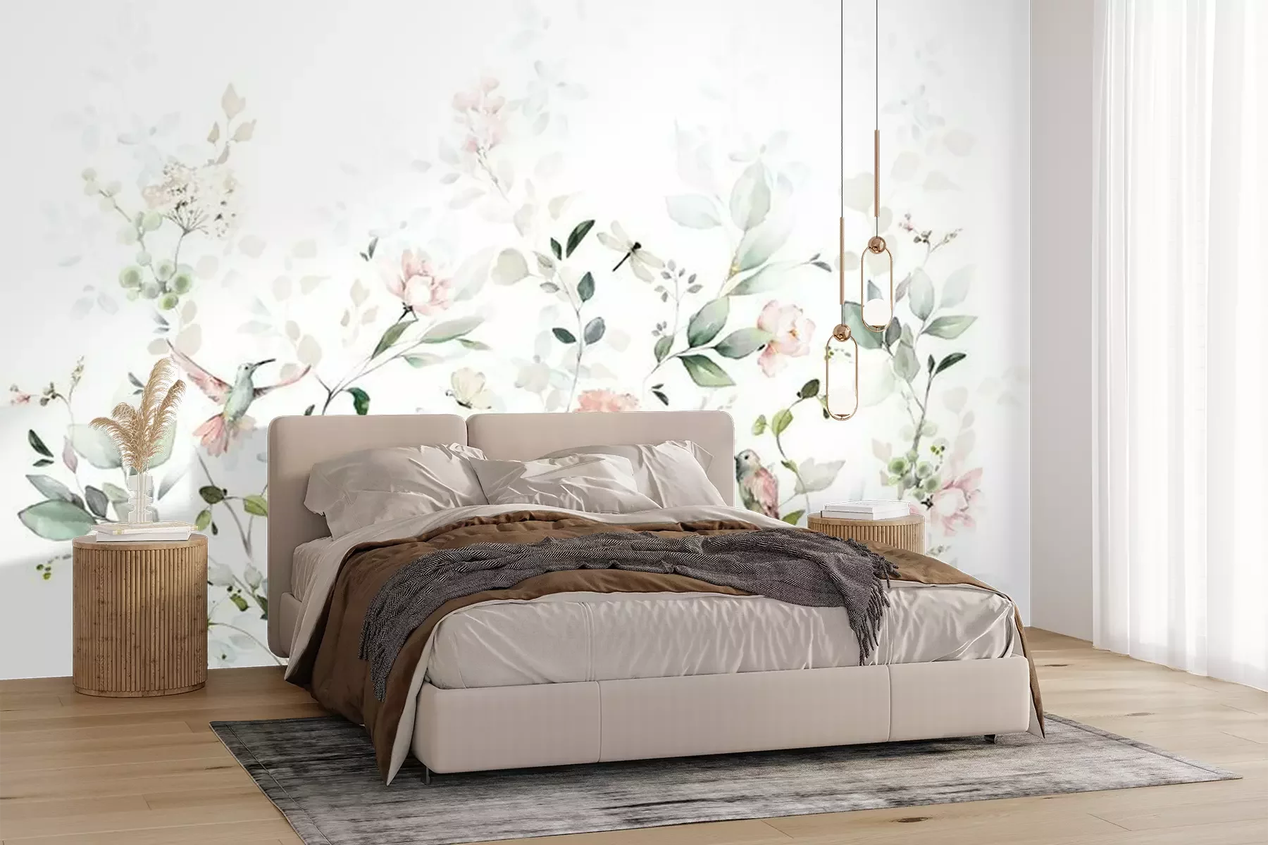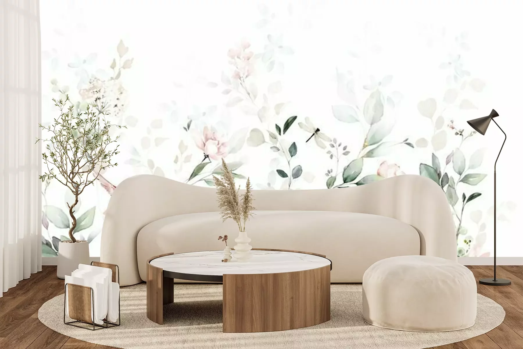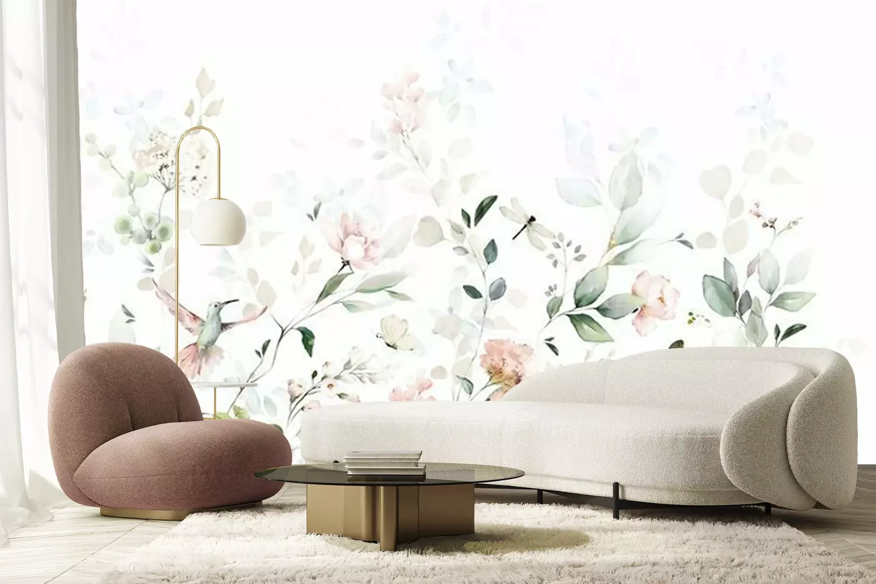 Sticker Watercolor arrangements with garden roses, birds. collection pink flowers, leaves, branches. decorative trees isolated on white background.