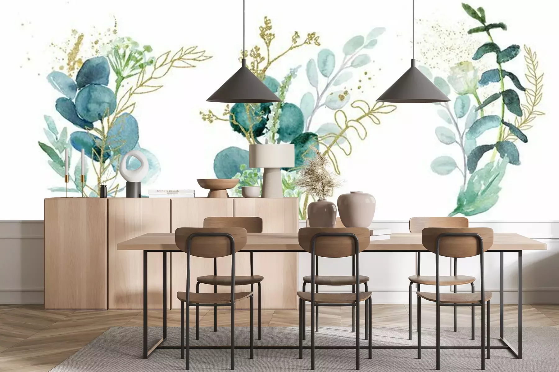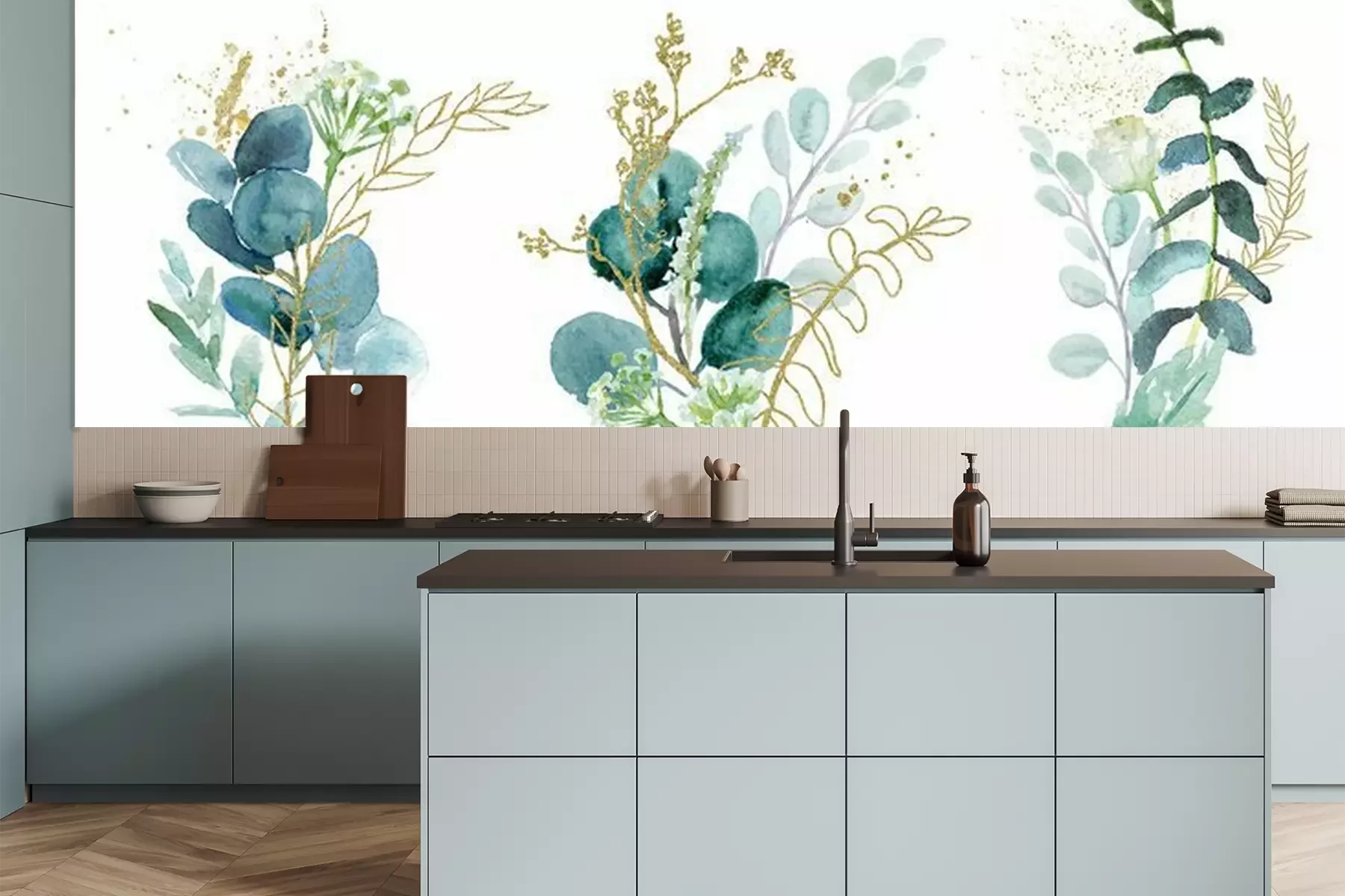 Sticker Watercolor floral illustration set - green & gold leaf branches collection, for wedding stationary, greetings, wallpapers, fashion, background. Eucalyptus, olive, green leaves, etc.