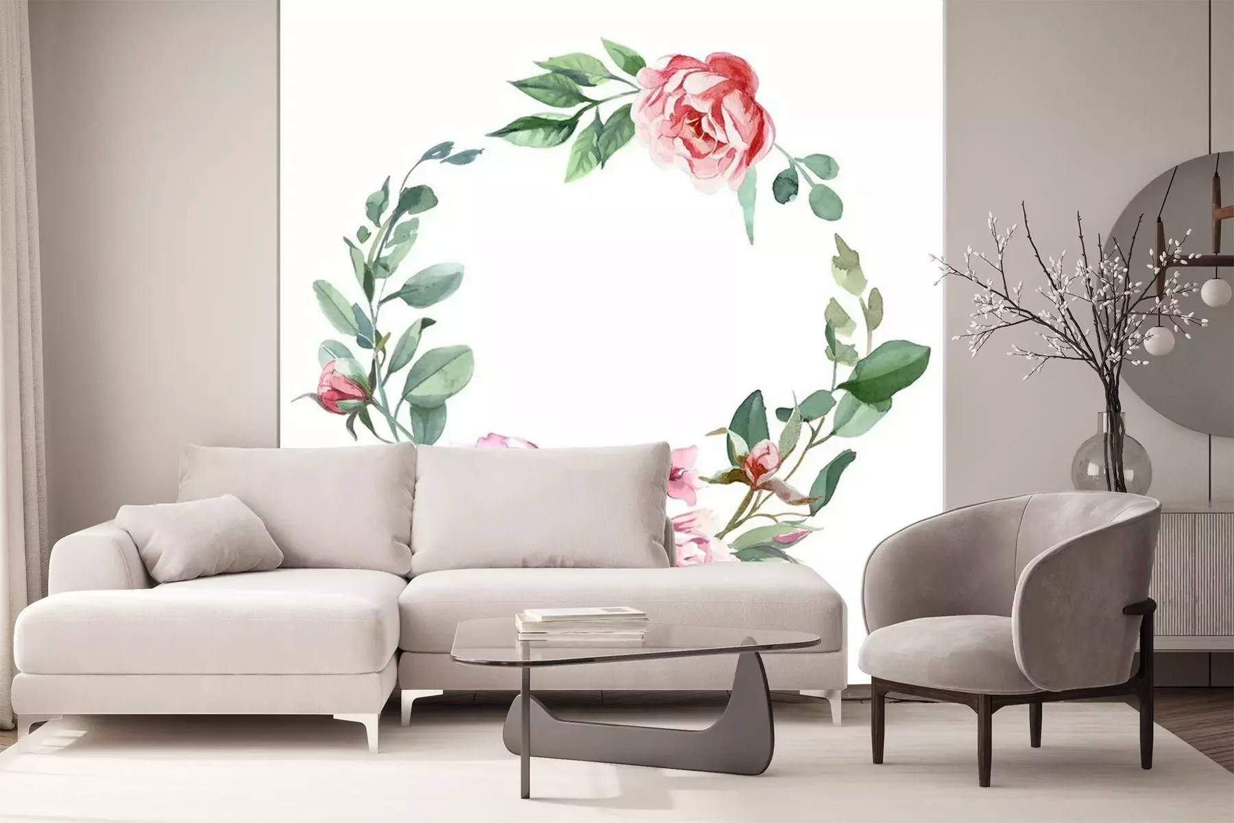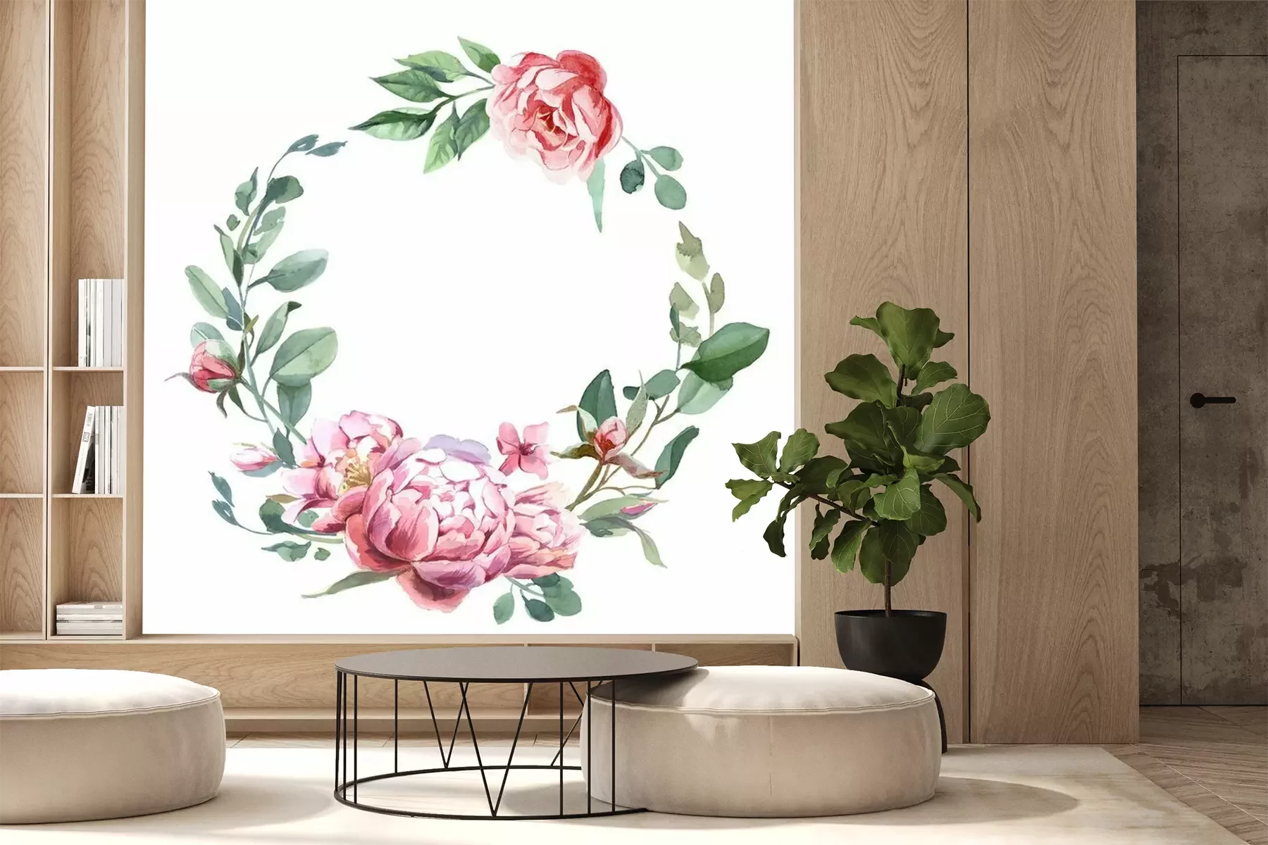 Sticker Watercolor frae of peony and blosom flowers isolate in white background for wedding, invitation, valentine cards and prints