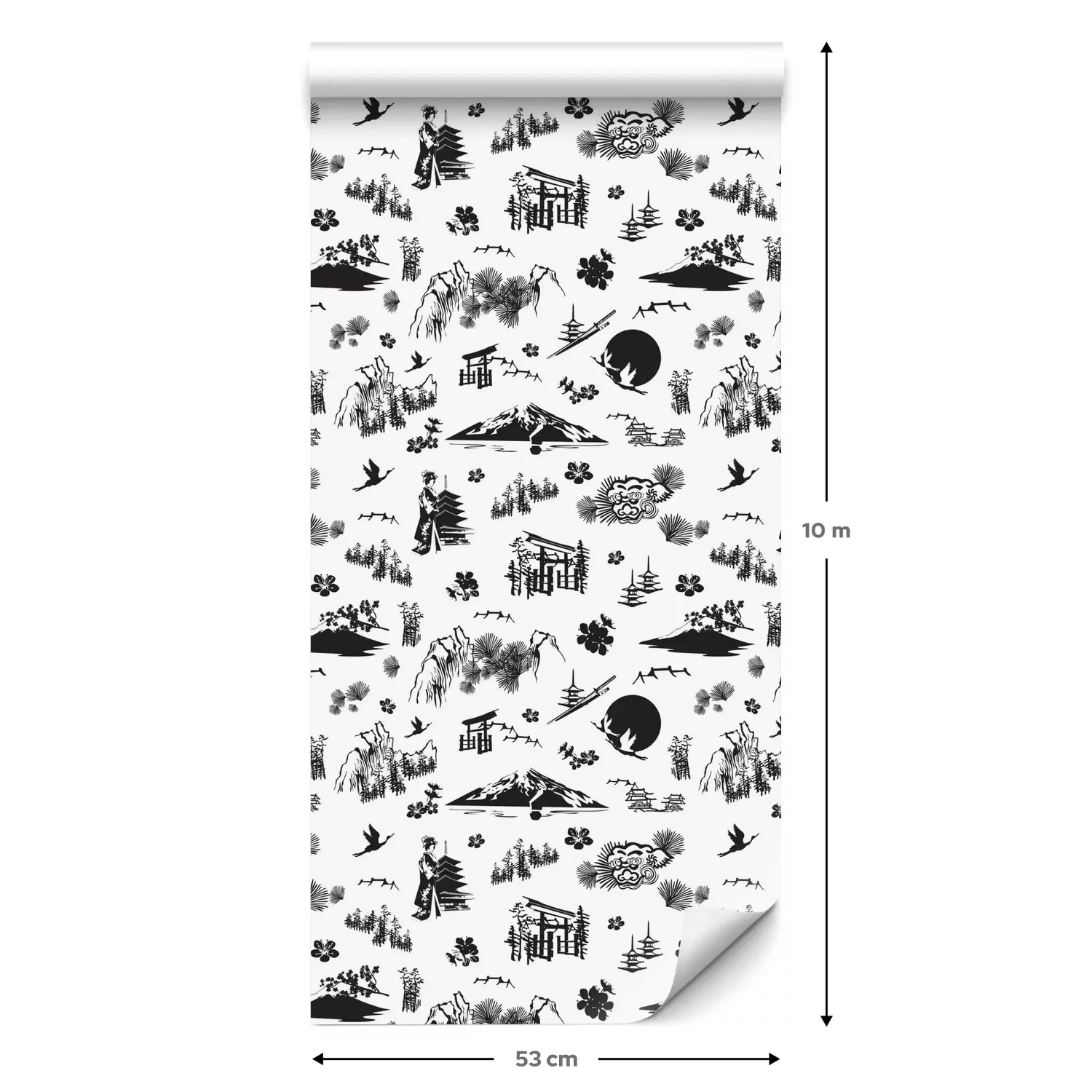 Eine Standard-Tapetenrolle hat die Maße 0,53 m x 10 m und deckt eine Wandfläche von etwa 5 m² ab.