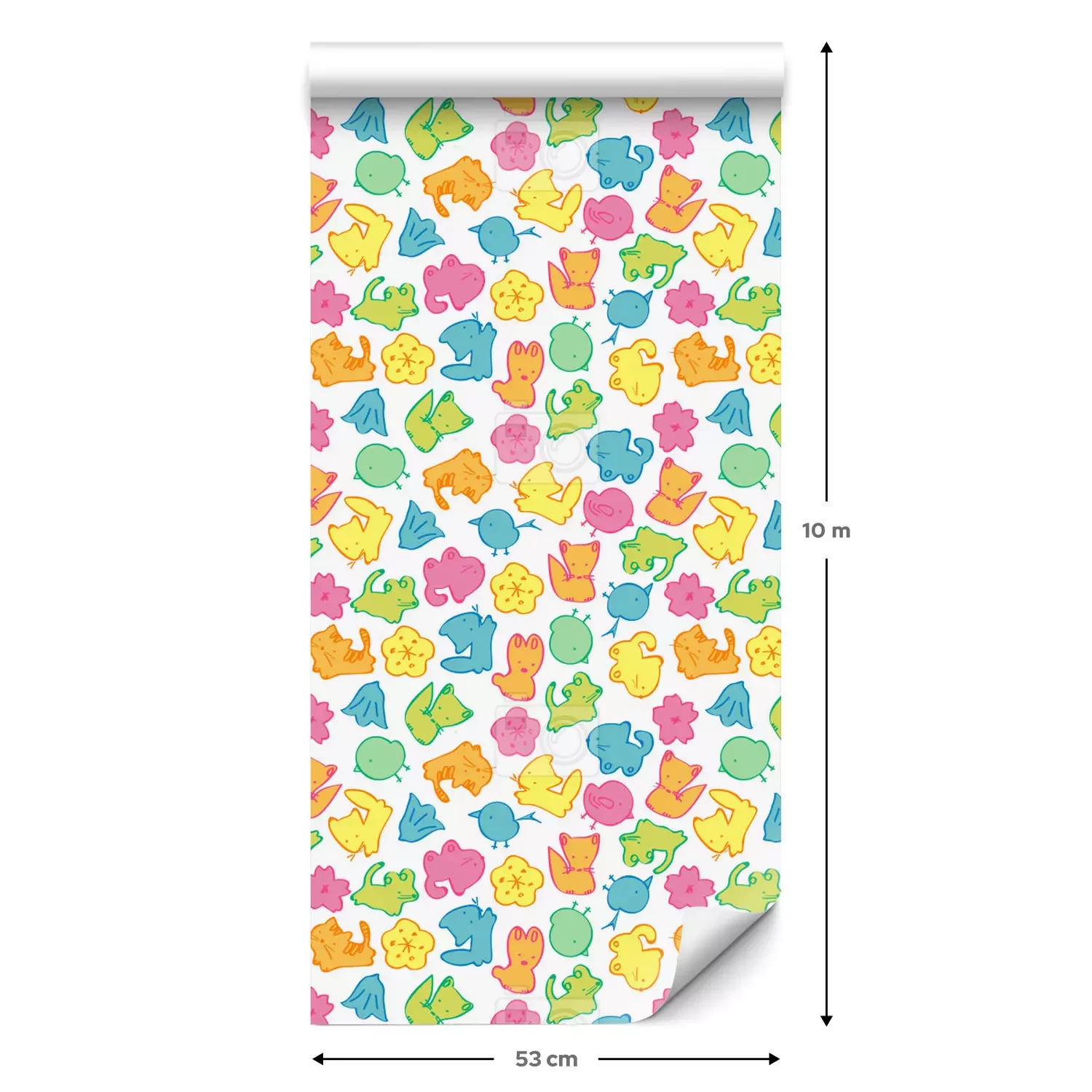 Eine Standard-Tapetenrolle hat die Maße 0,53 m x 10 m und deckt eine Wandfläche von etwa 5 m² ab.