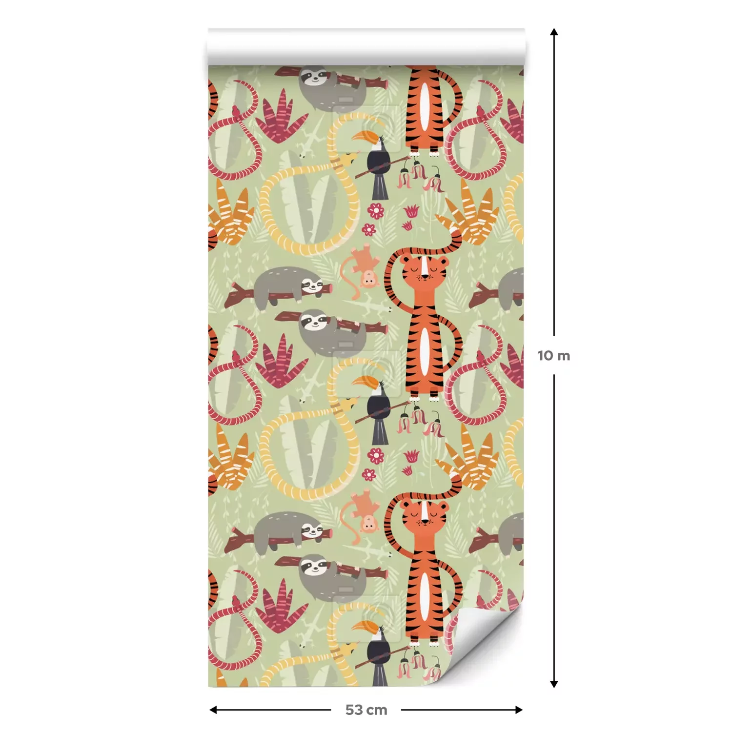 Eine Standard-Tapetenrolle hat die Maße 0,53 m x 10 m und deckt eine Wandfläche von etwa 5 m² ab.