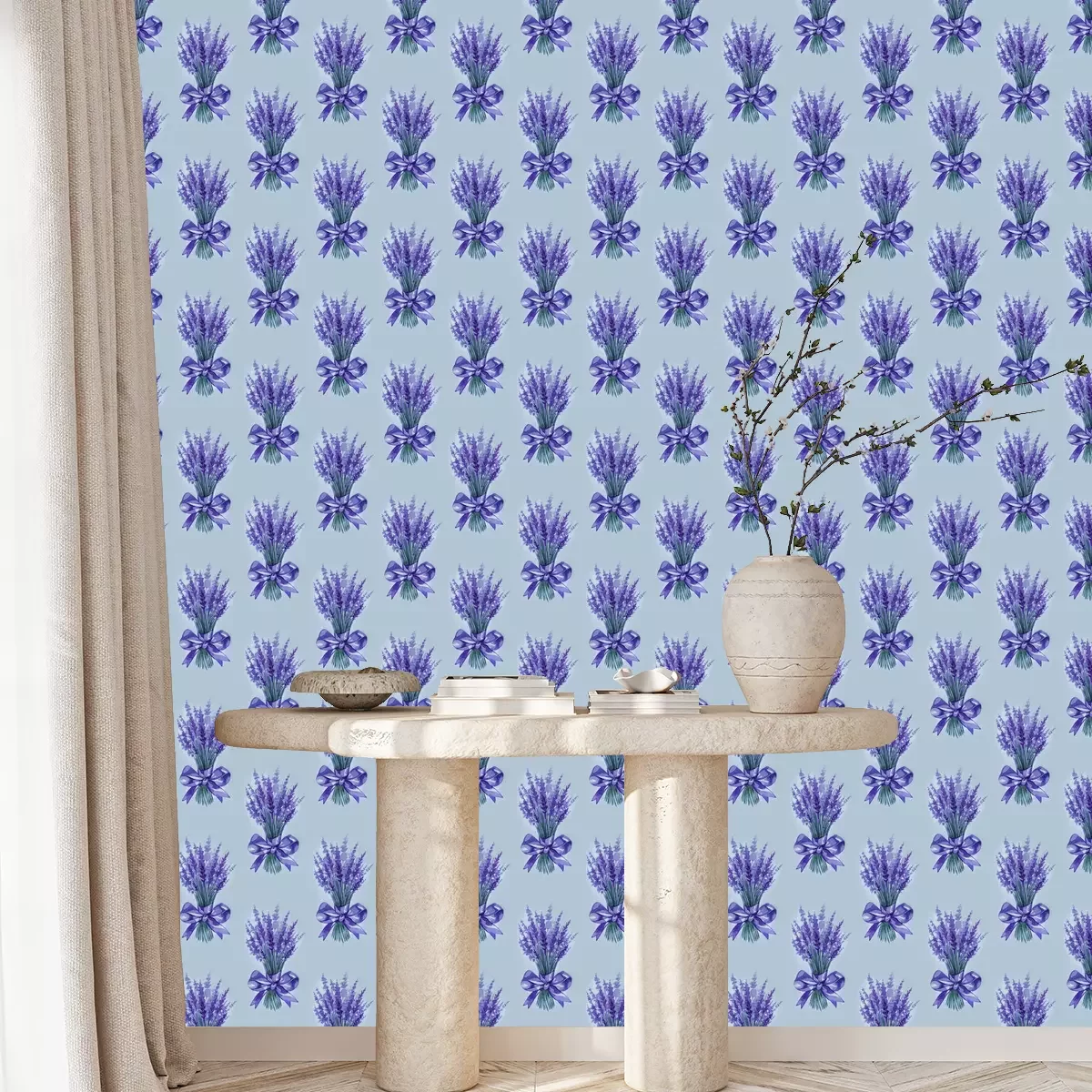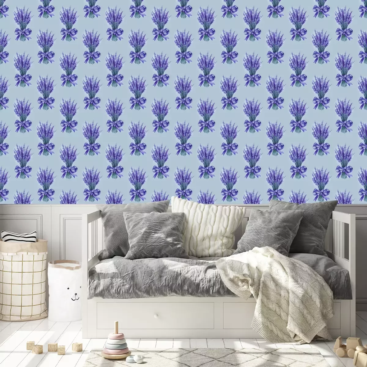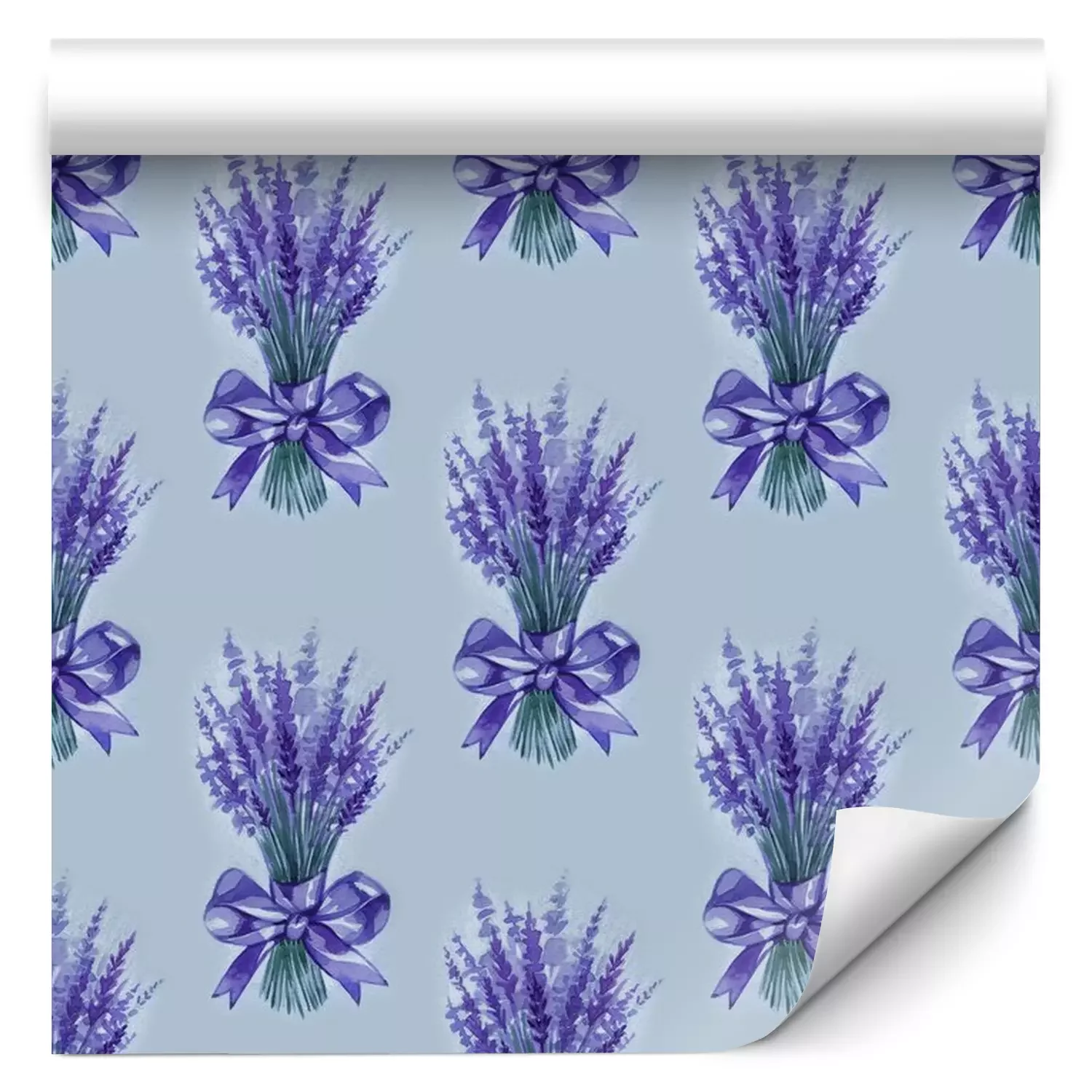 Tapete Lavender flowers purple watercolor seamless pattern. Beautiful violet lavender retro background. Elegant fabric on light background Surface pattern design.
