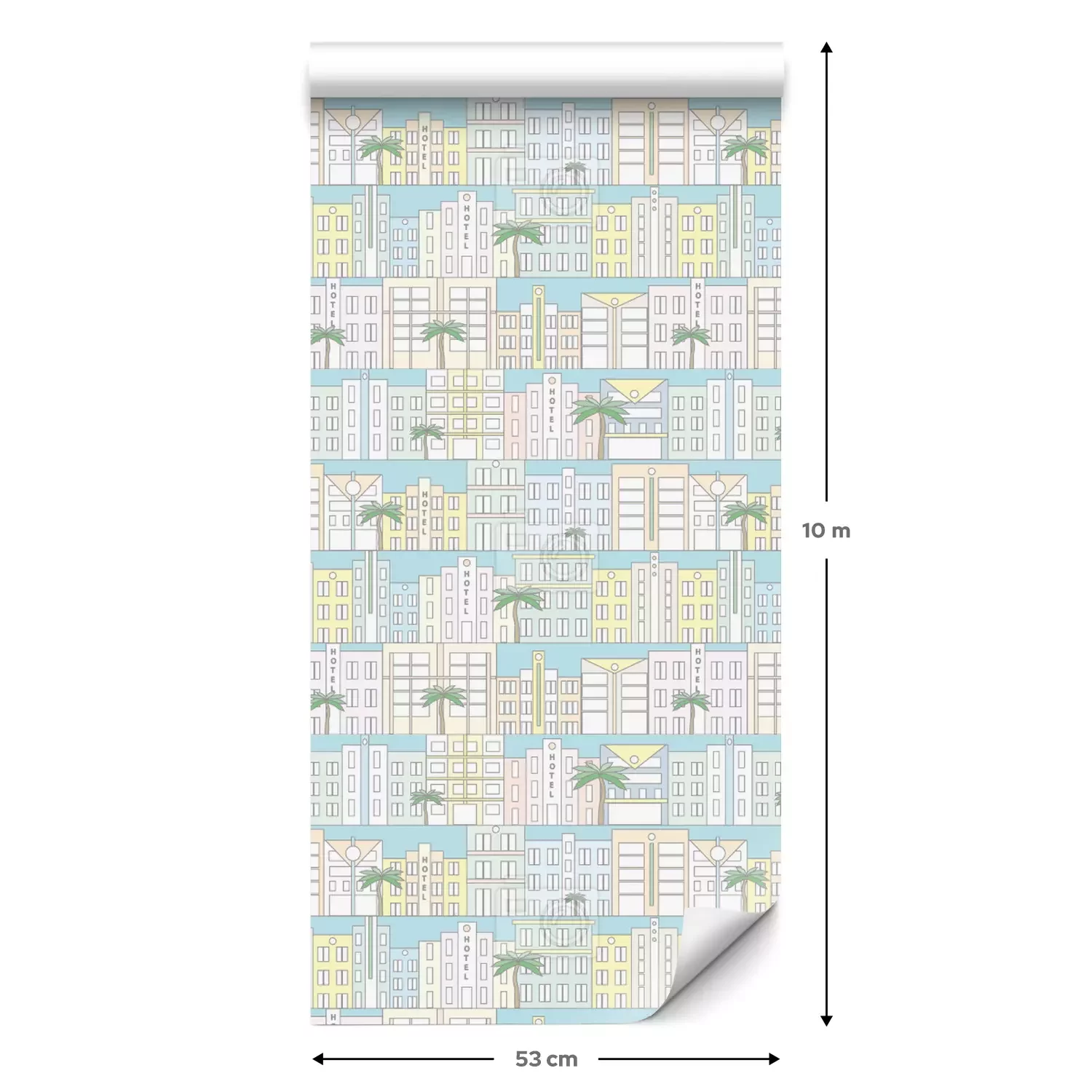 Eine Standard-Tapetenrolle hat die Maße 0,53 m x 10 m und deckt eine Wandfläche von etwa 5 m² ab.