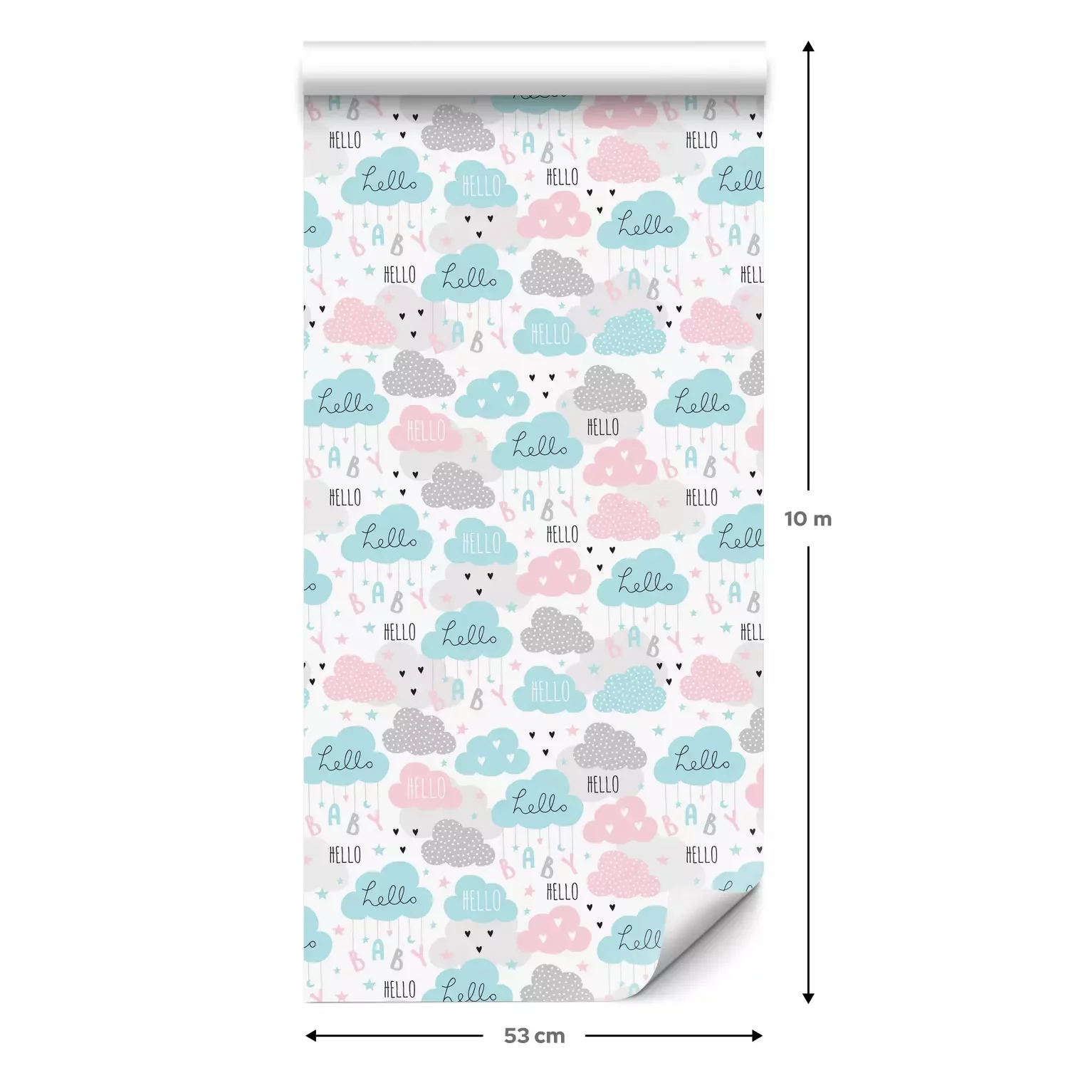 Eine Standard-Tapetenrolle hat die Maße 0,53 m x 10 m und deckt eine Wandfläche von etwa 5 m² ab.