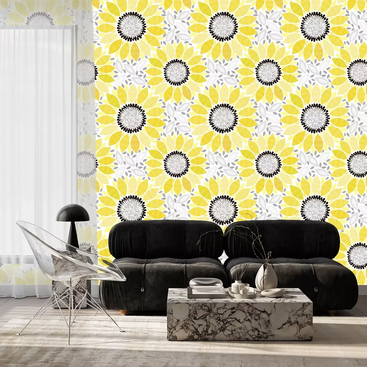 Tapete Nahtlose Muster mit Sonnenblumen. Abstract floral Hintergrund.
