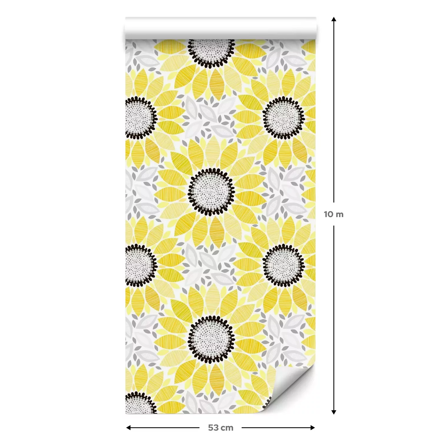 Eine Standard-Tapetenrolle hat die Maße 0,53 m x 10 m und deckt eine Wandfläche von etwa 5 m² ab.