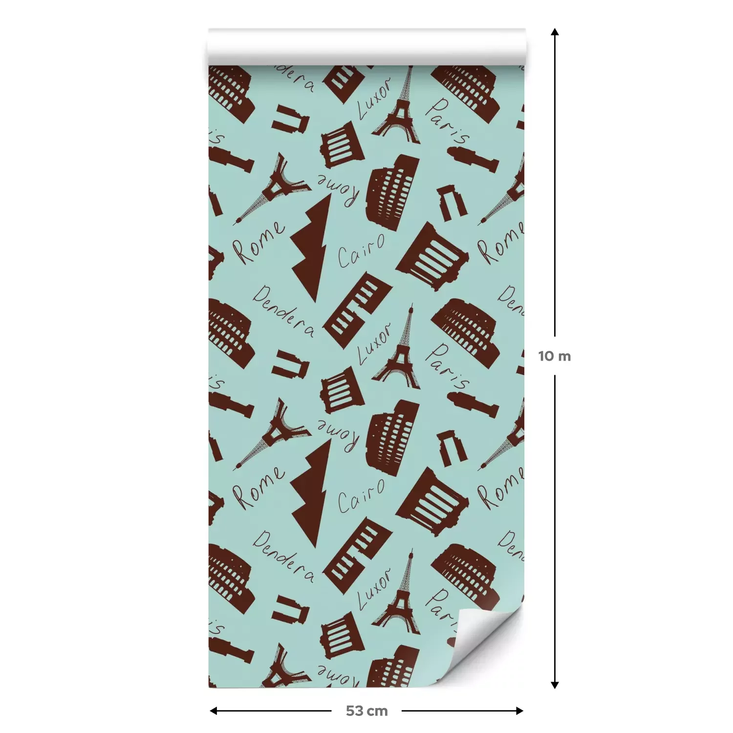 Eine Standard-Tapetenrolle hat die Maße 0,53 m x 10 m und deckt eine Wandfläche von etwa 5 m² ab.