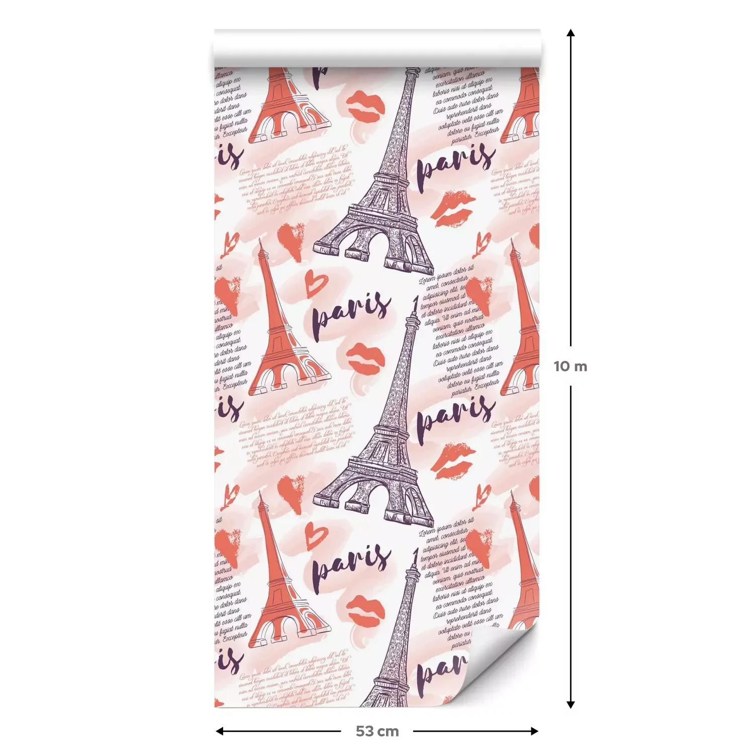 Eine Standard-Tapetenrolle hat die Maße 0,53 m x 10 m und deckt eine Wandfläche von etwa 5 m² ab.