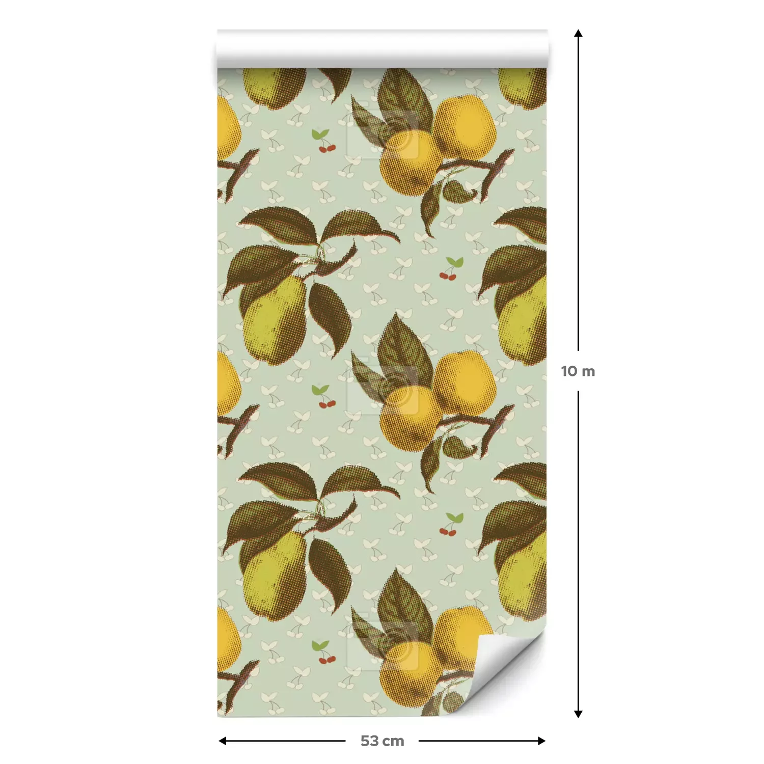 Eine Standard-Tapetenrolle hat die Maße 0,53 m x 10 m und deckt eine Wandfläche von etwa 5 m² ab.