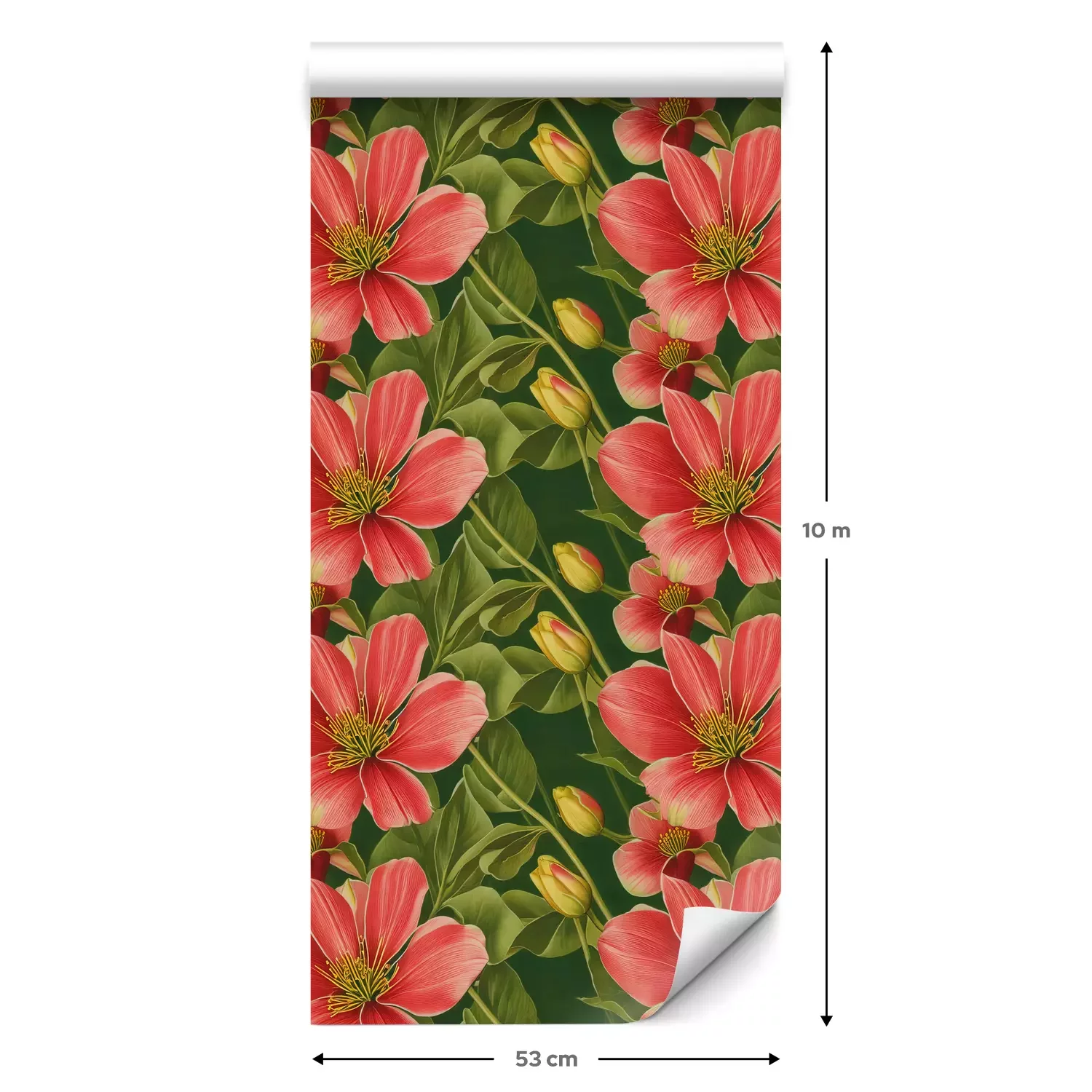 Eine Standard-Tapetenrolle hat die Maße 0,53 m x 10 m und deckt eine Wandfläche von etwa 5 m² ab.