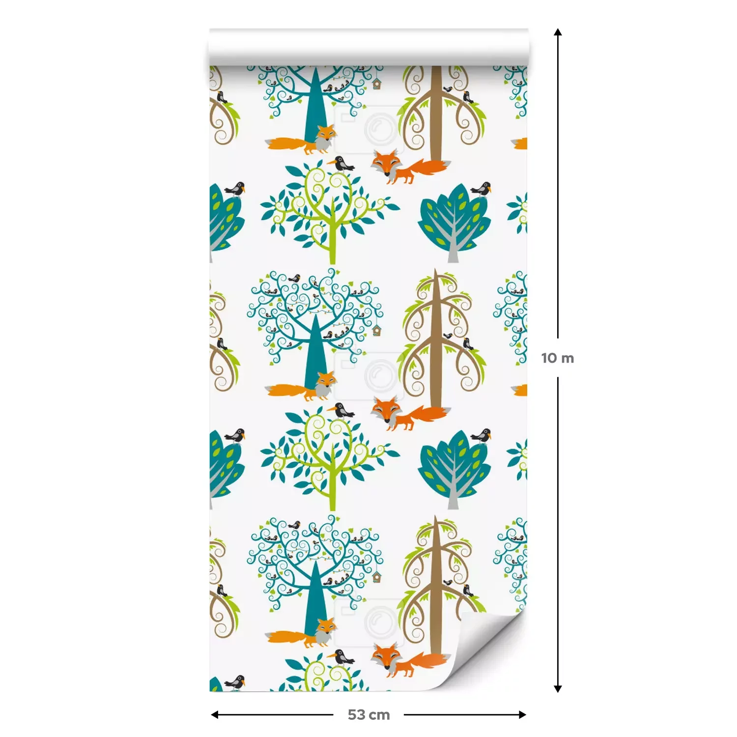 Eine Standard-Tapetenrolle hat die Maße 0,53 m x 10 m und deckt eine Wandfläche von etwa 5 m² ab.