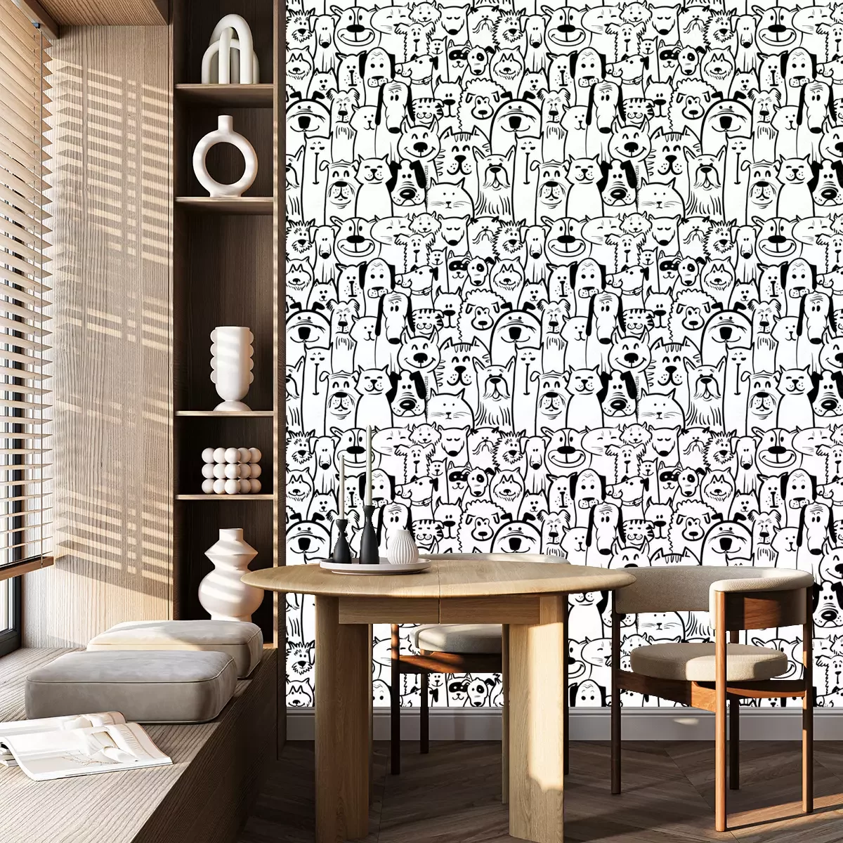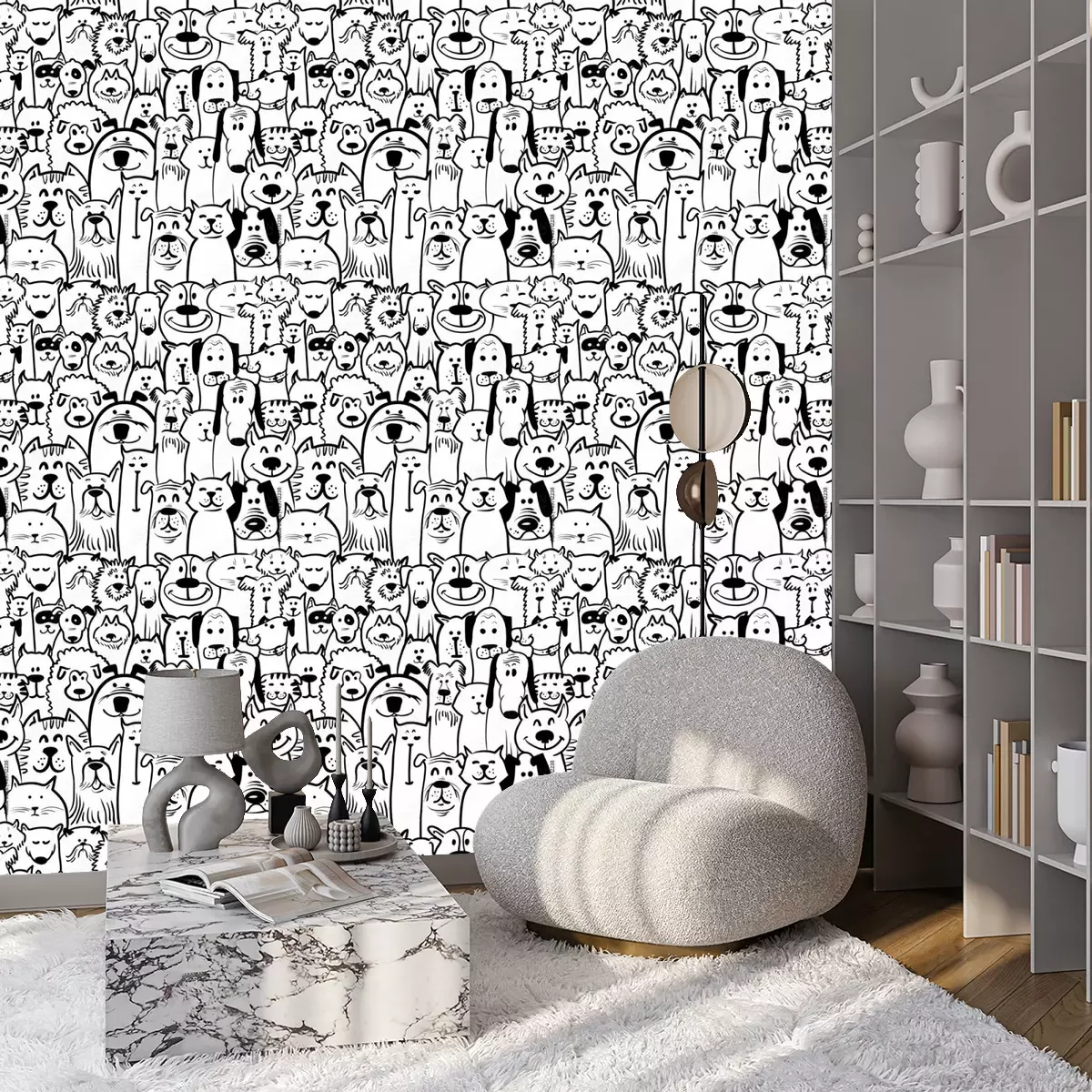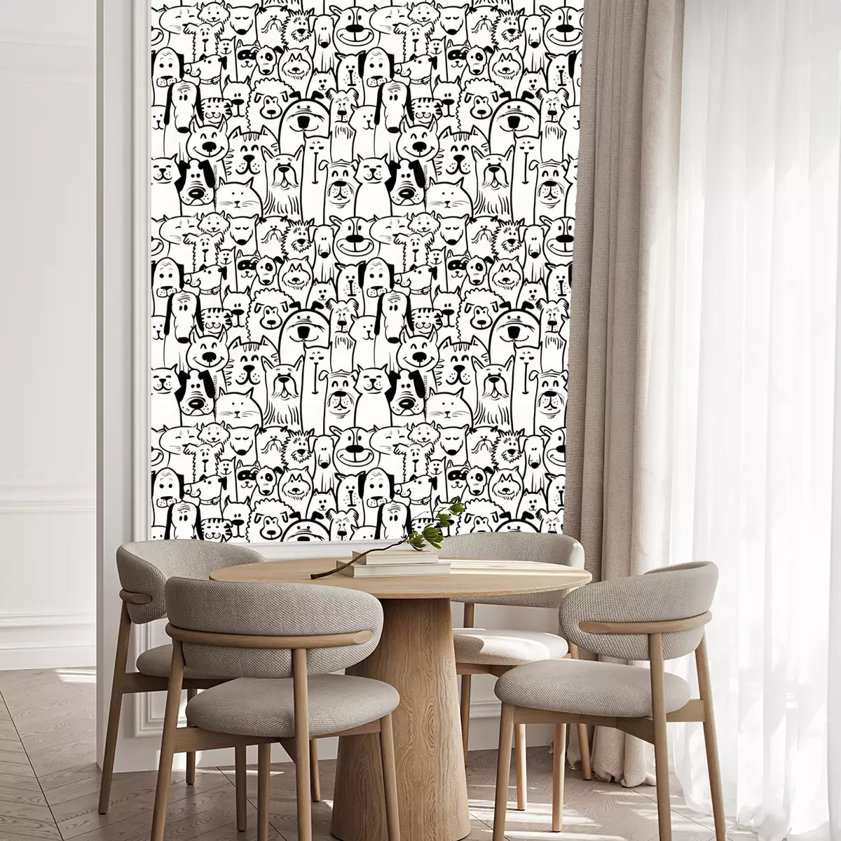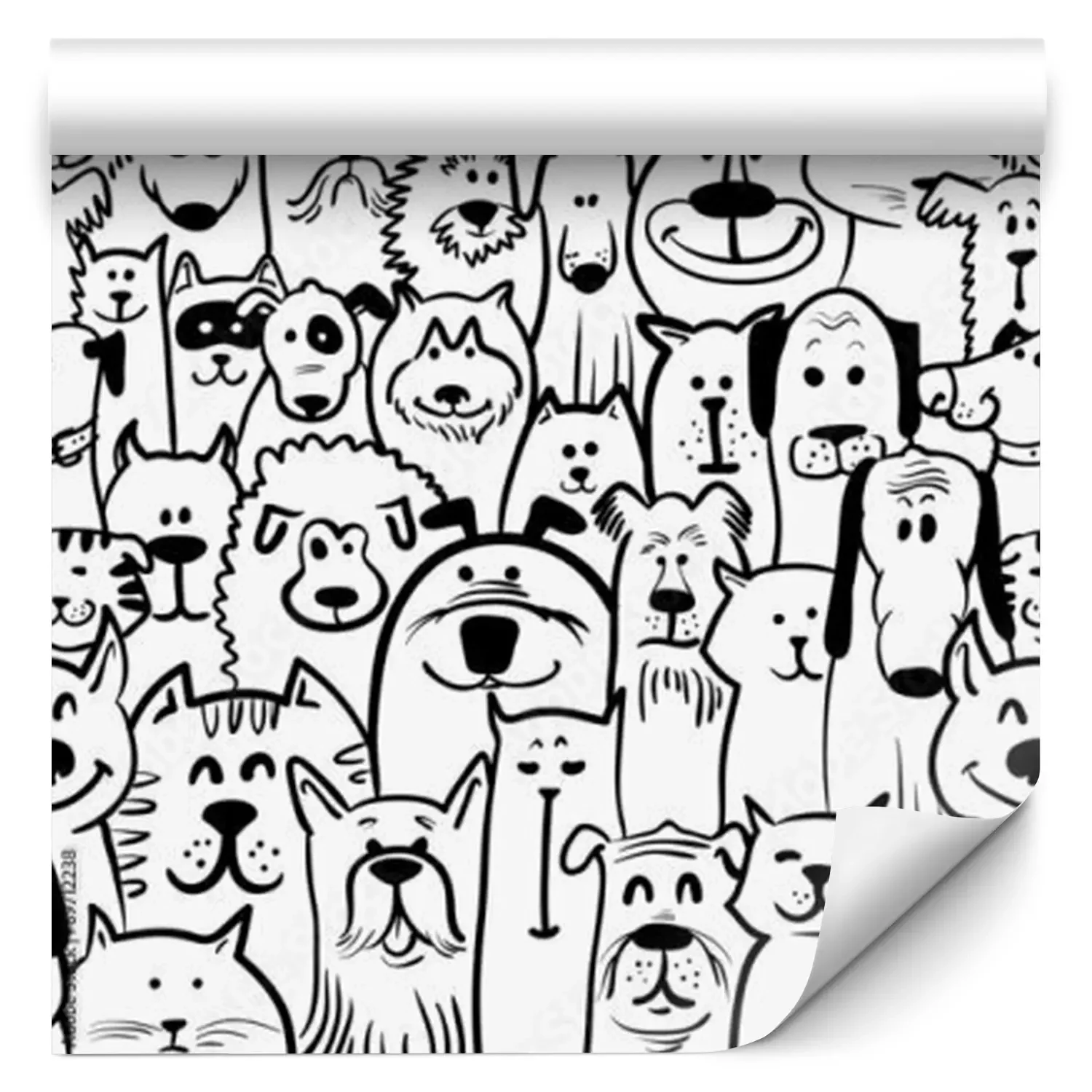 Tapete Schwarz-weiße gemalte Hunden und Katzen