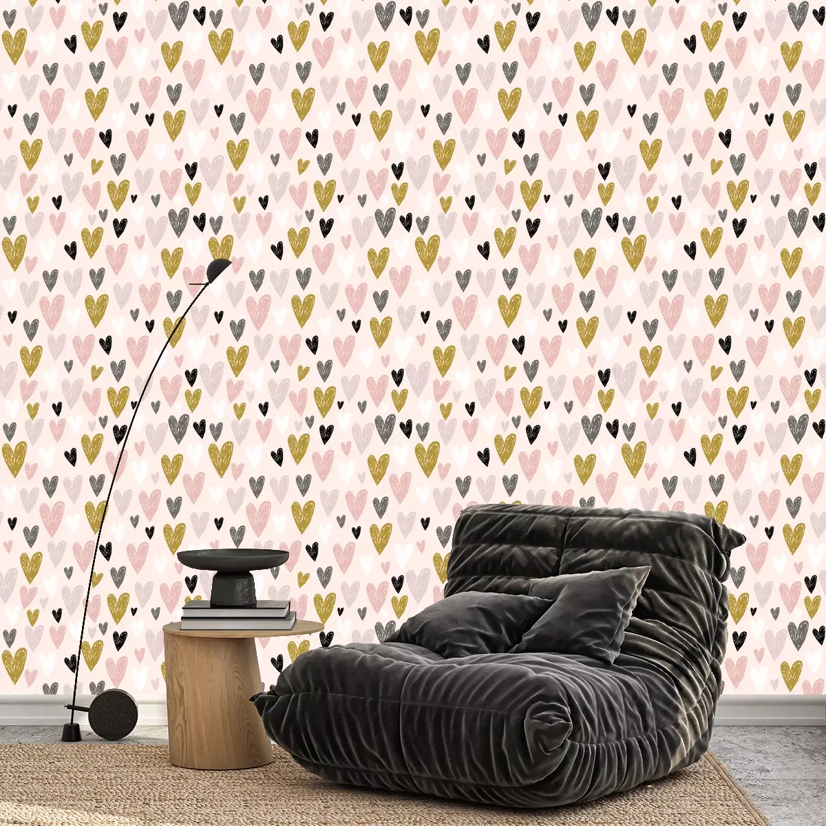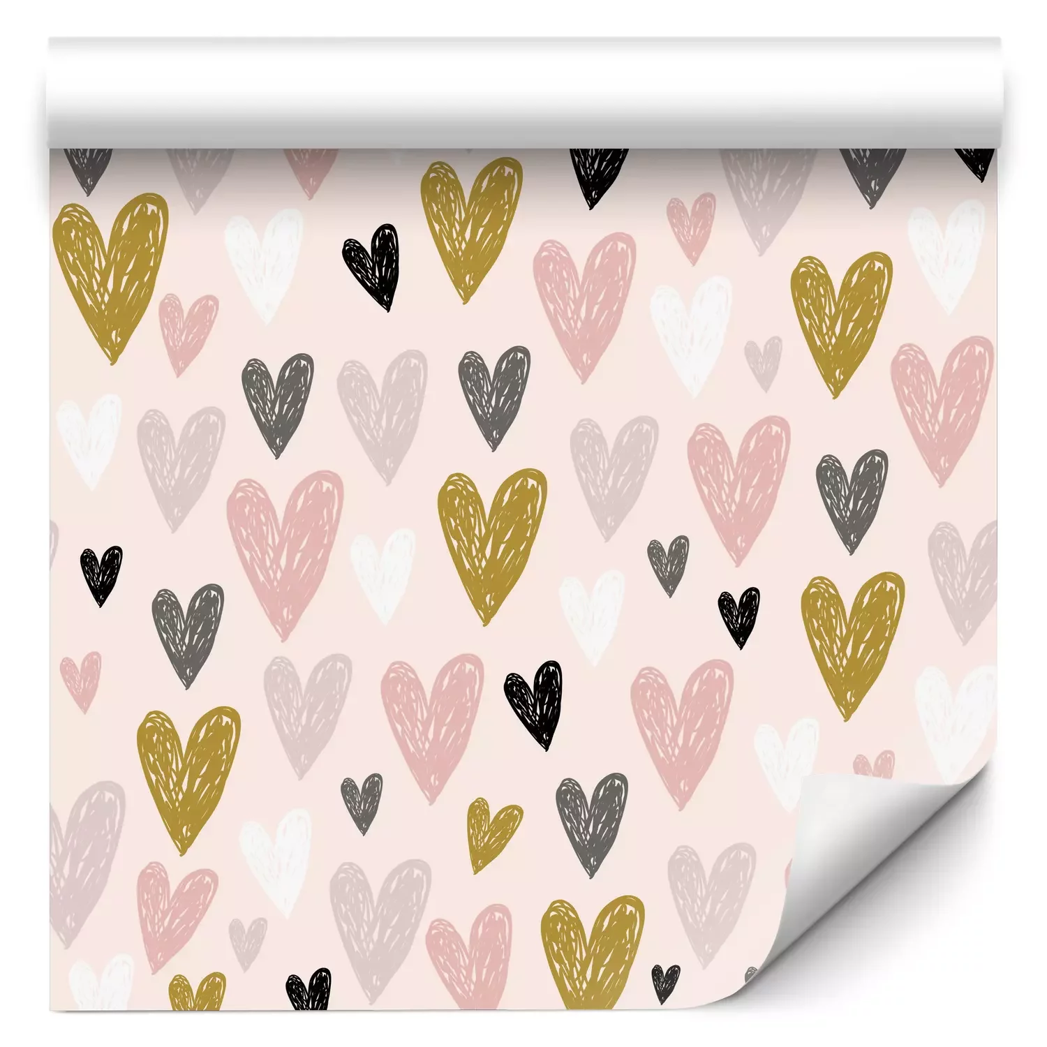 Tapete Seamless childish pattern with pink hand drawn hearts.Creative scandinavian kids texture for fabric, wrapping, textile, wallpaper, apparel. Vector illustration