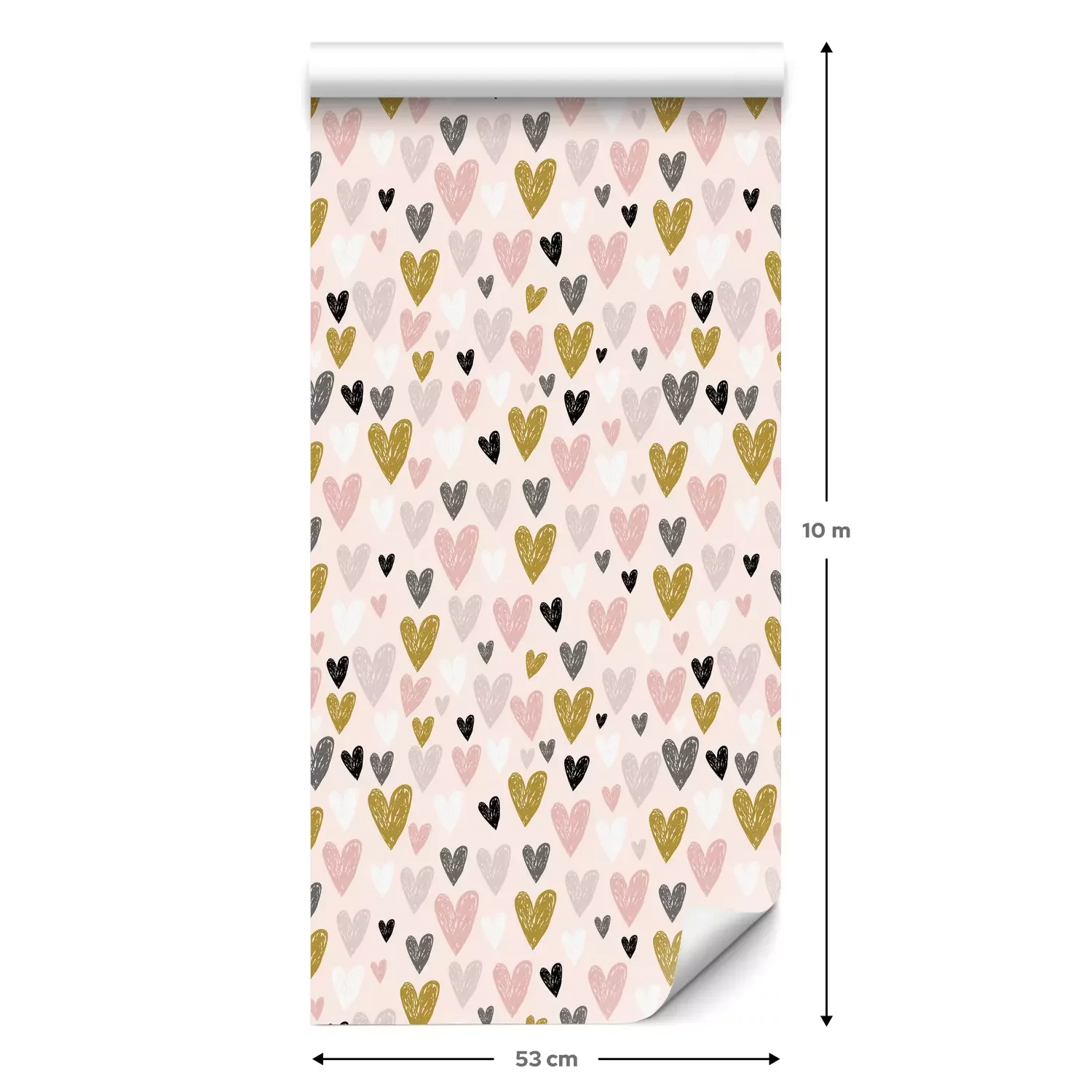 Eine Standard-Tapetenrolle hat die Maße 0,53 m x 10 m und deckt eine Wandfläche von etwa 5 m² ab.