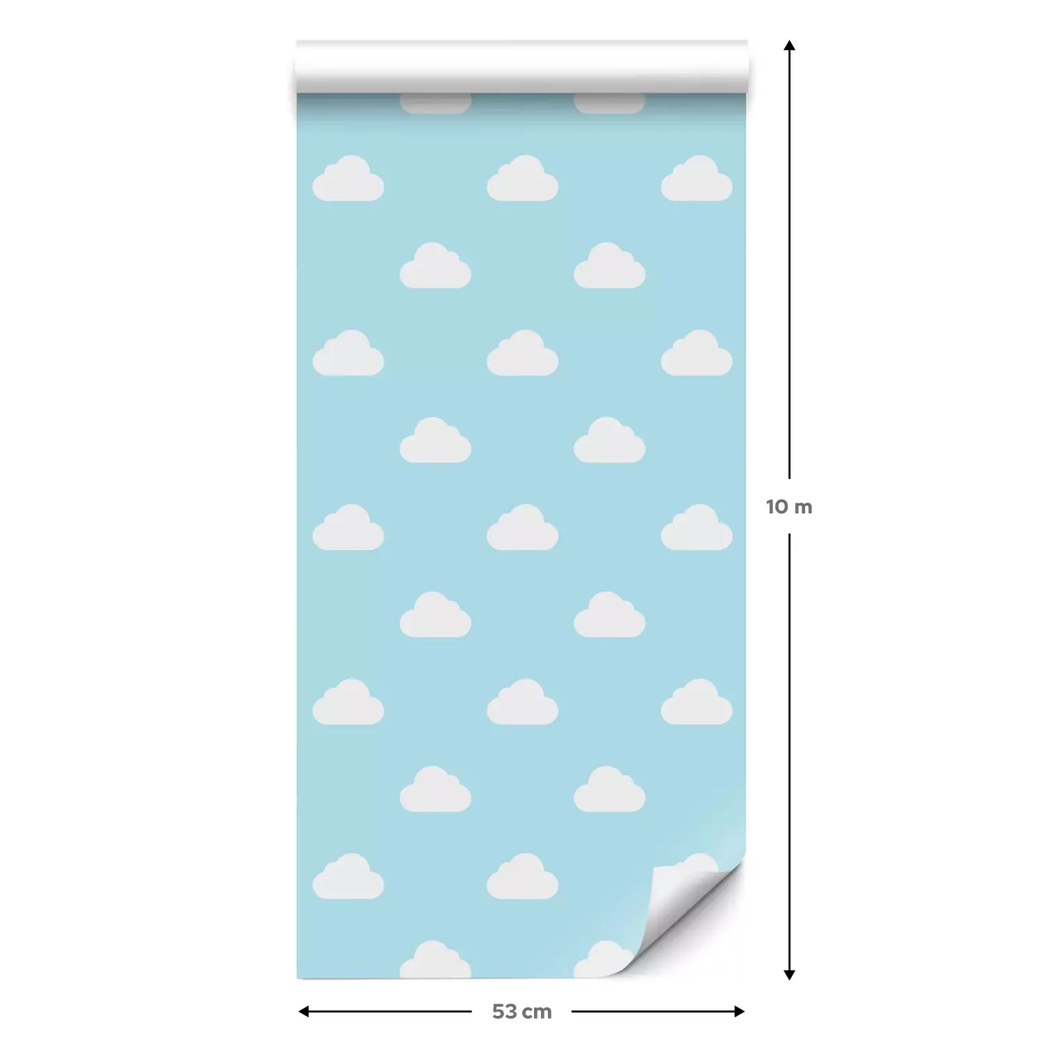 Eine Standard-Tapetenrolle hat die Maße 0,53 m x 10 m und deckt eine Wandfläche von etwa 5 m² ab.