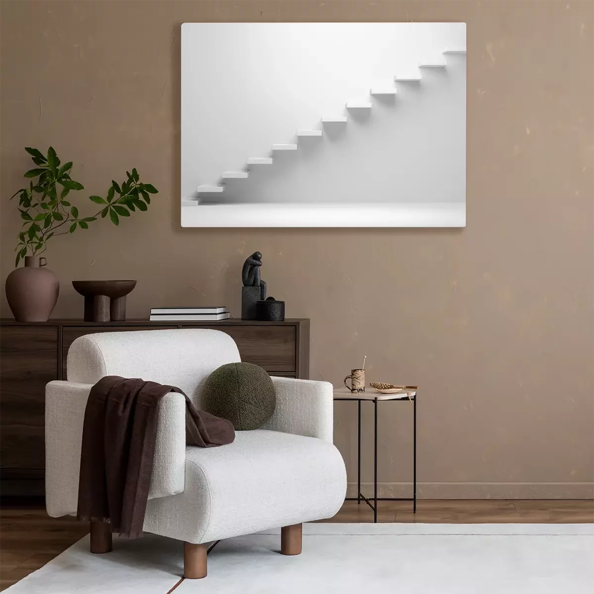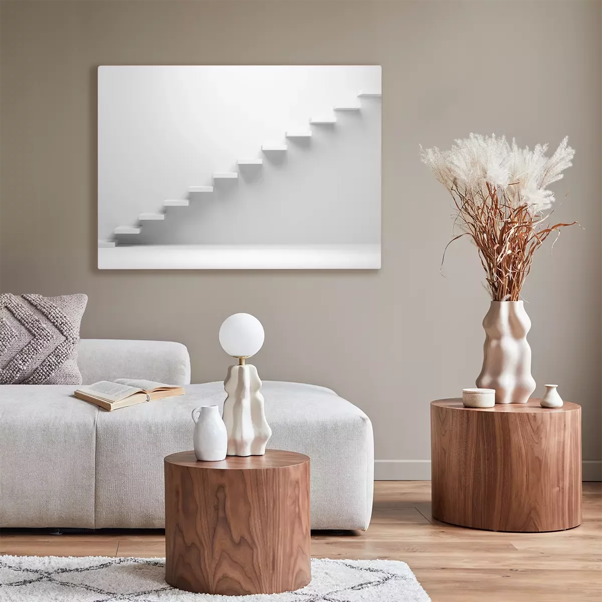 Weiße aufsteigende Treppe Großansicht