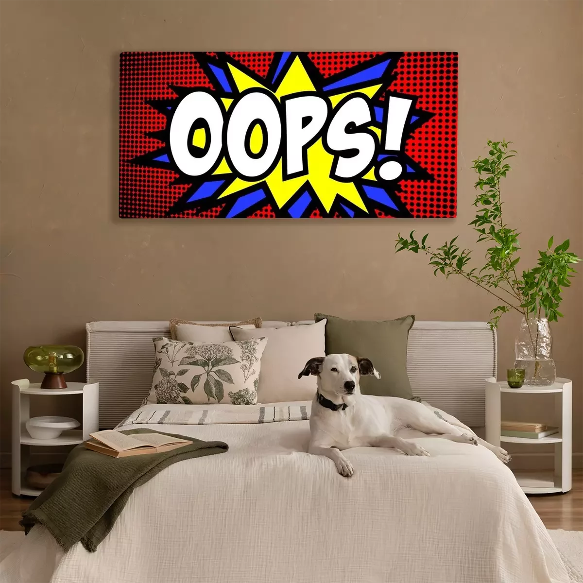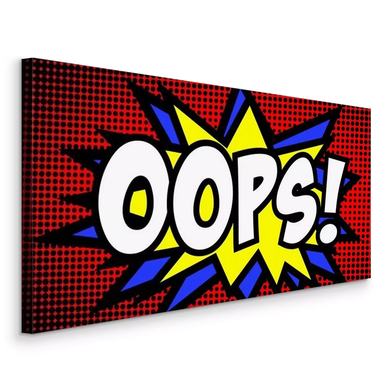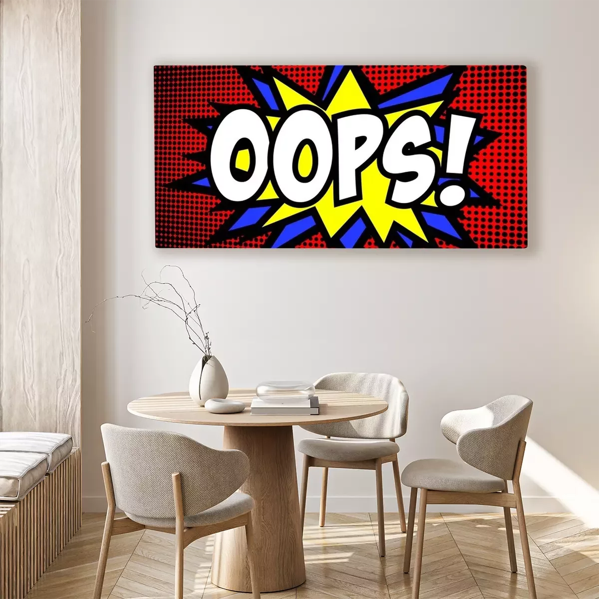 Bild: A comic strip cartoon with the word Oops. Green and halftone background, star shape effect.