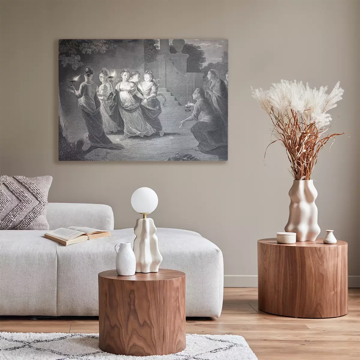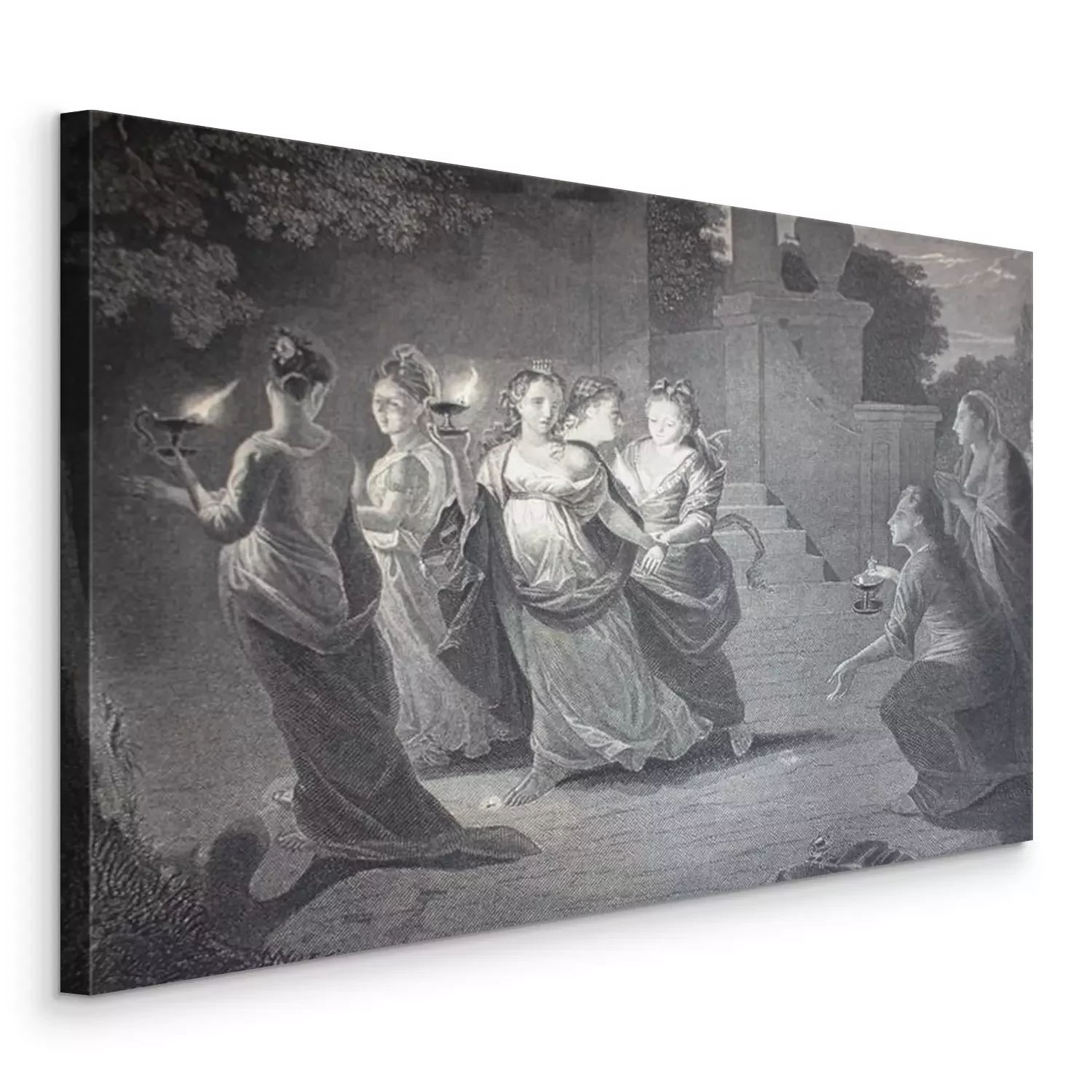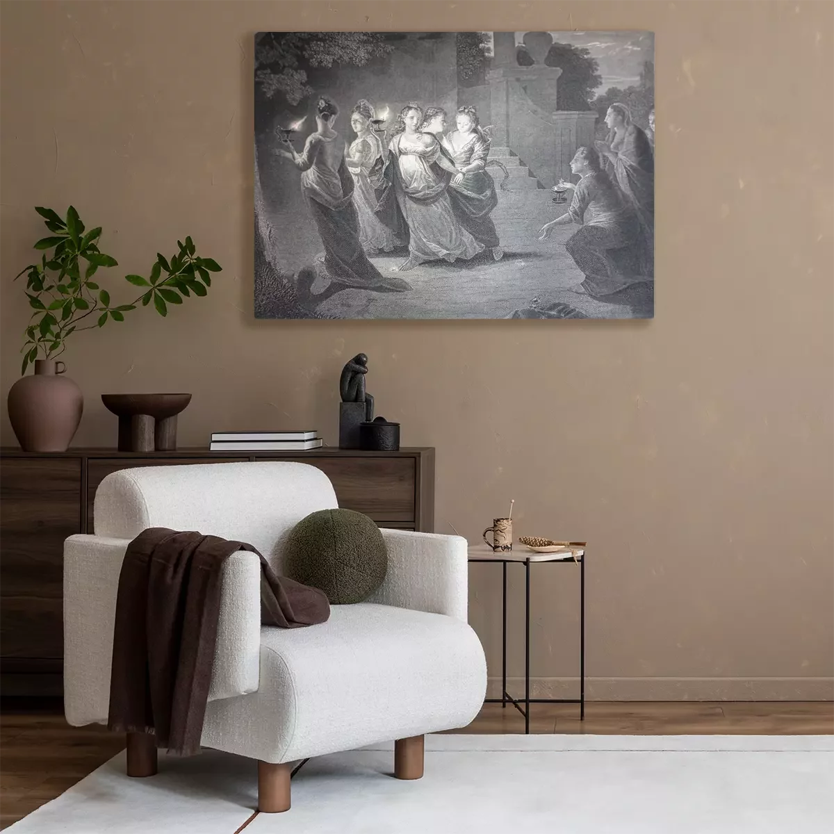 Bild: A Proverb of Wise and Foolish Girls by Godfried Schalcken engraved in the vintage book the Painting Galleries of Europe, by M.O. Wolf, 1863