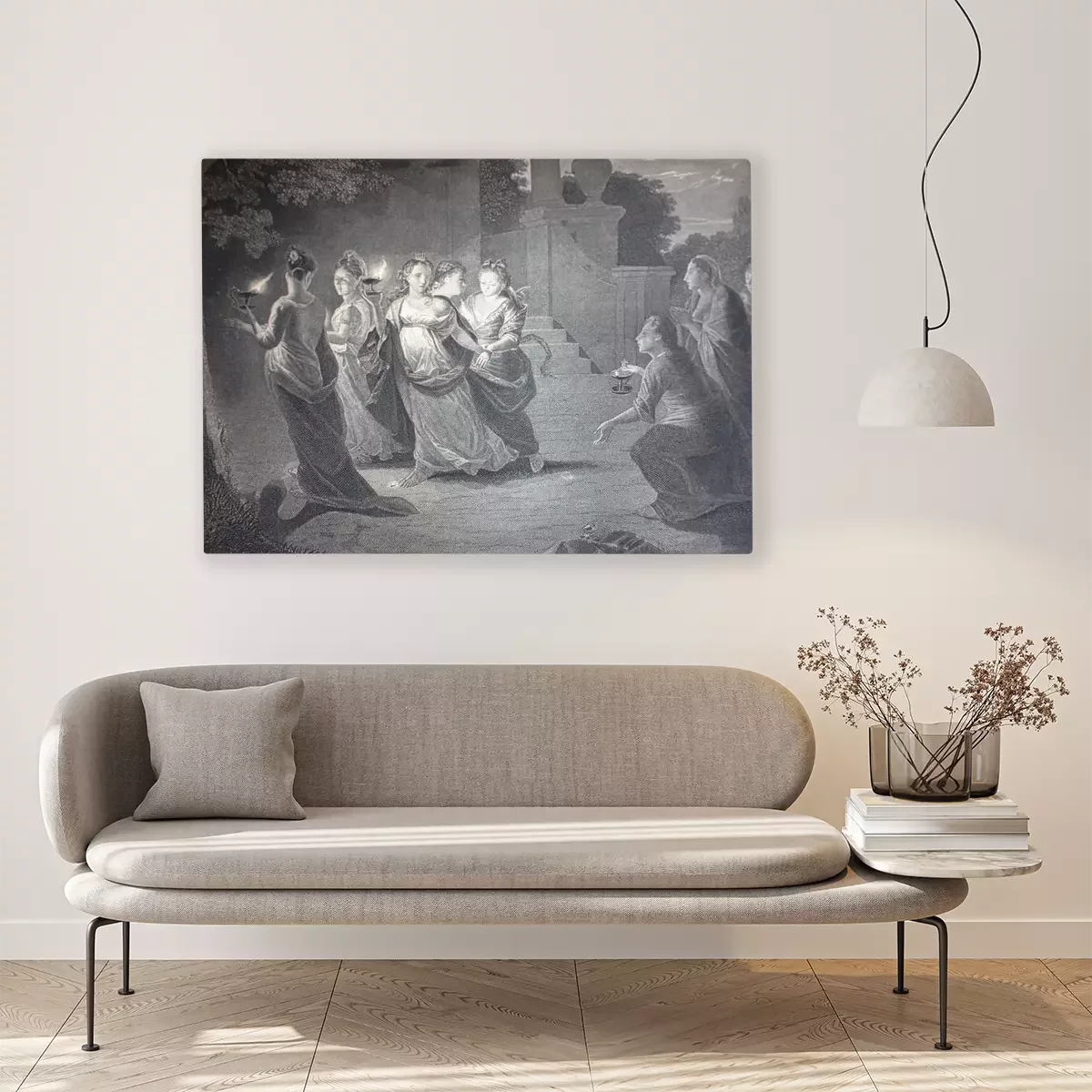 Bild A Proverb of Wise and Foolish Girls by Godfried Schalcken engraved in the vintage book the Painting Galleries of Europe, by M.O. Wolf, 1863