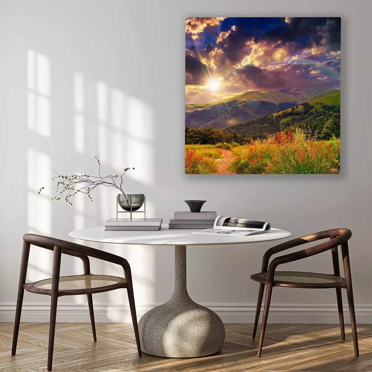 Das Motiv wird auf eine qualitativ hochwertige Leinwand gedruckt, die auf einen Blendrahmen gezogen wird. Da der Aufdruck die Seitenkanten bedeckt, muss das Bild nicht zusätzlich eingerahmt werden. Wir empfehlen außerdem Kompositionen aus mehreren Bildern, die ein harmonisches Ganzes bilden.