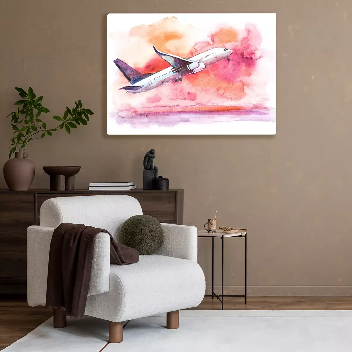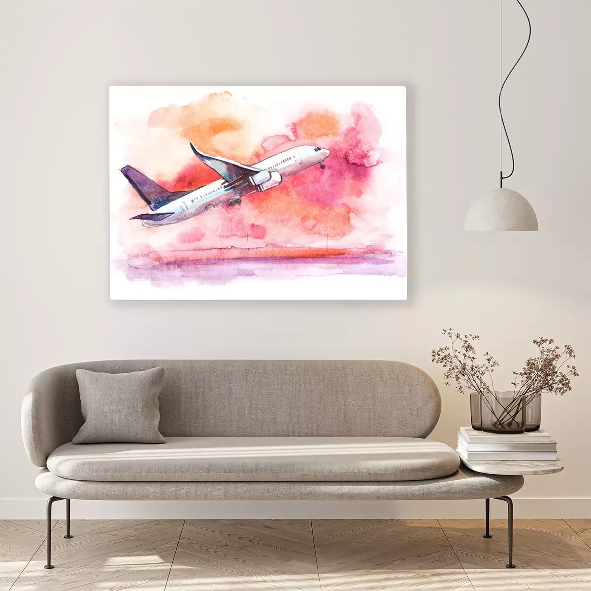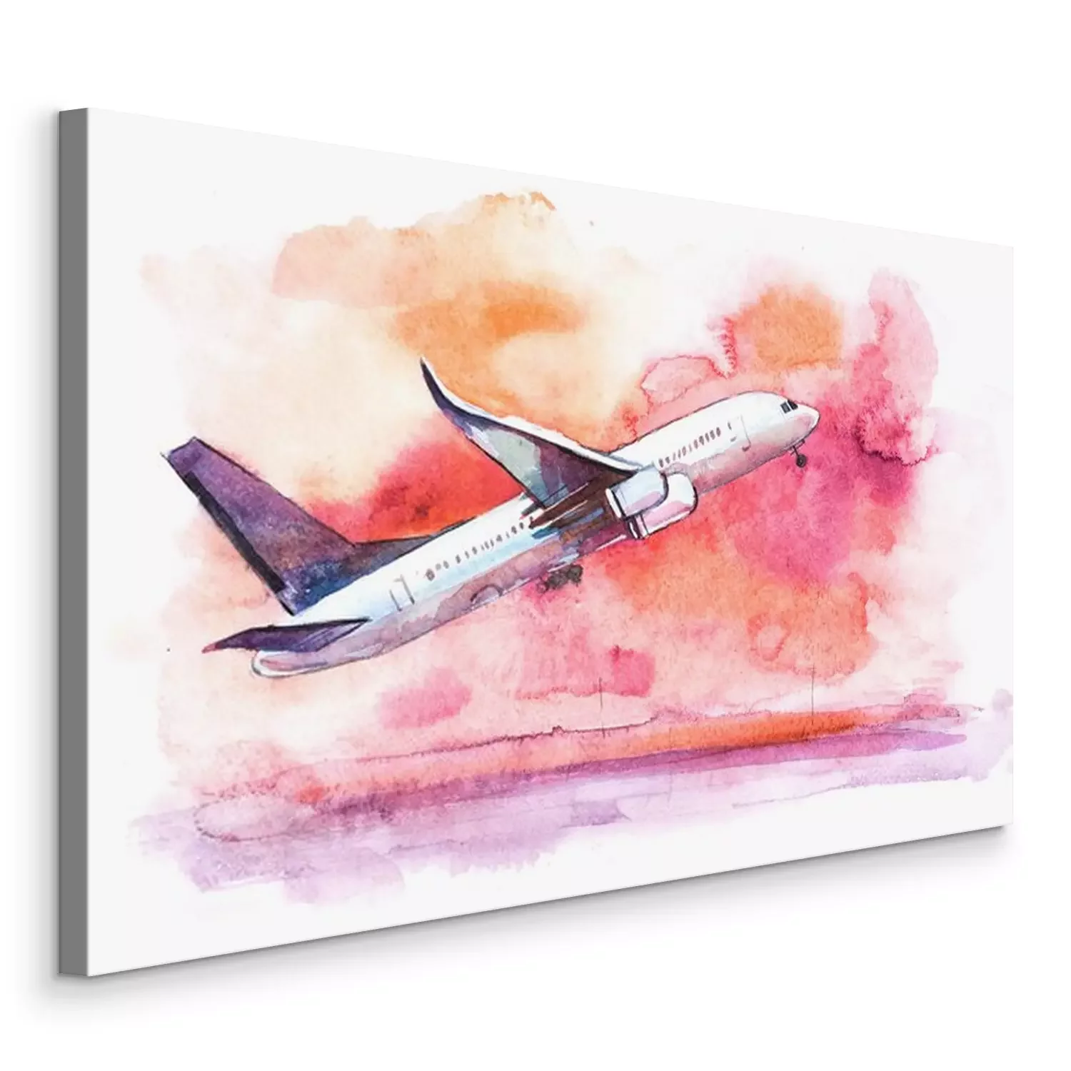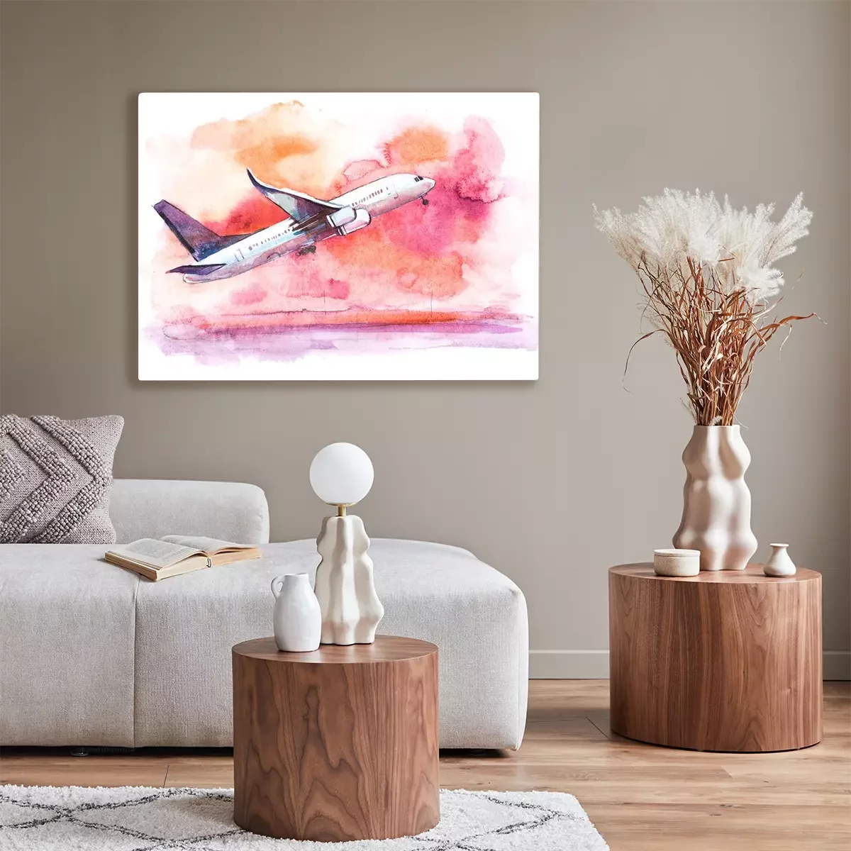 Bild Abfliegendes Flugzeug auf rosa Hintergrund