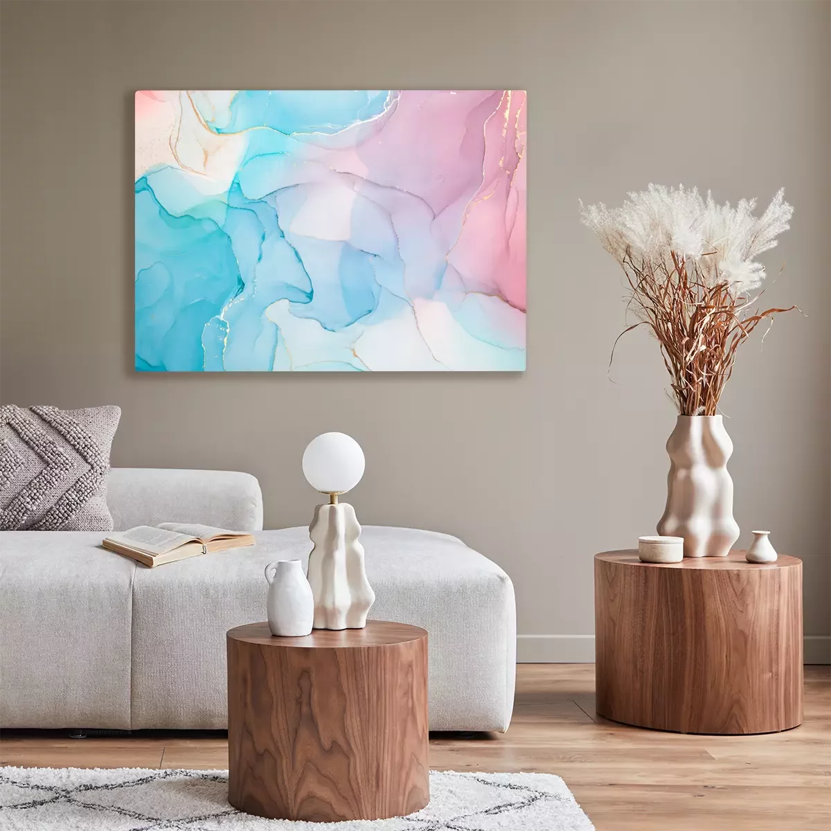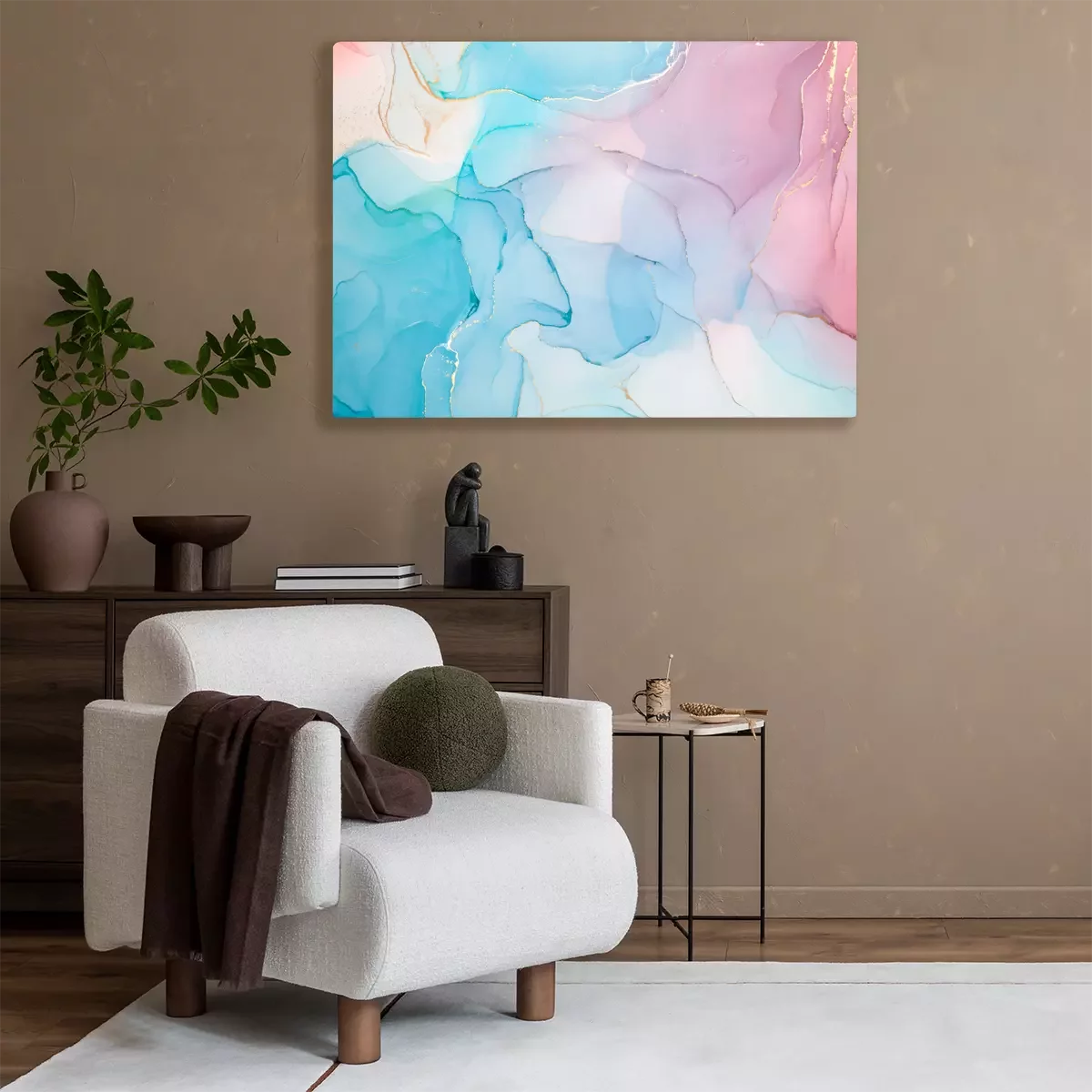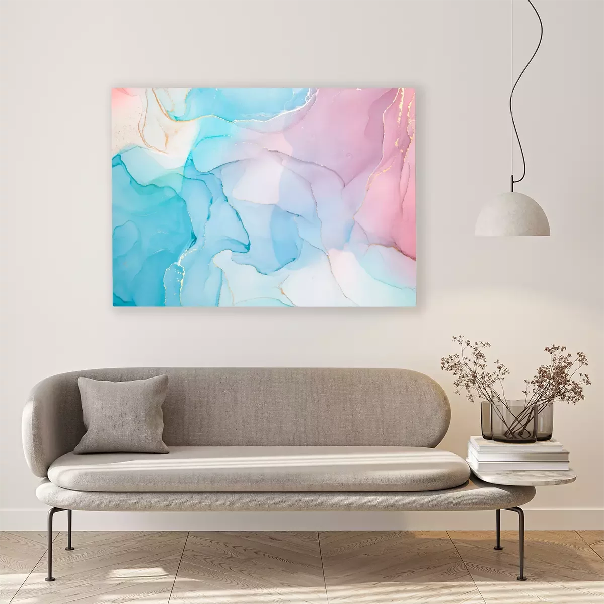 Natural  luxury abstract fluid art painting in alcohol ink technique. Tender and dreamy  wallpaper. Mixture of colors creating transparent waves and golden swirls. For posters, other printed materials