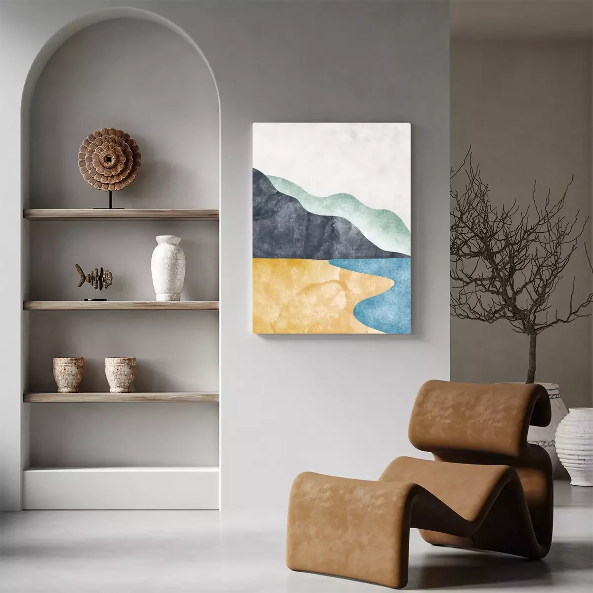 Abstract mountain landscape, Minimalist design. Abstract water color. vector background illustration.